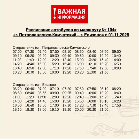 На Камчатке междугородний автобус 104 переходит на новое расписание