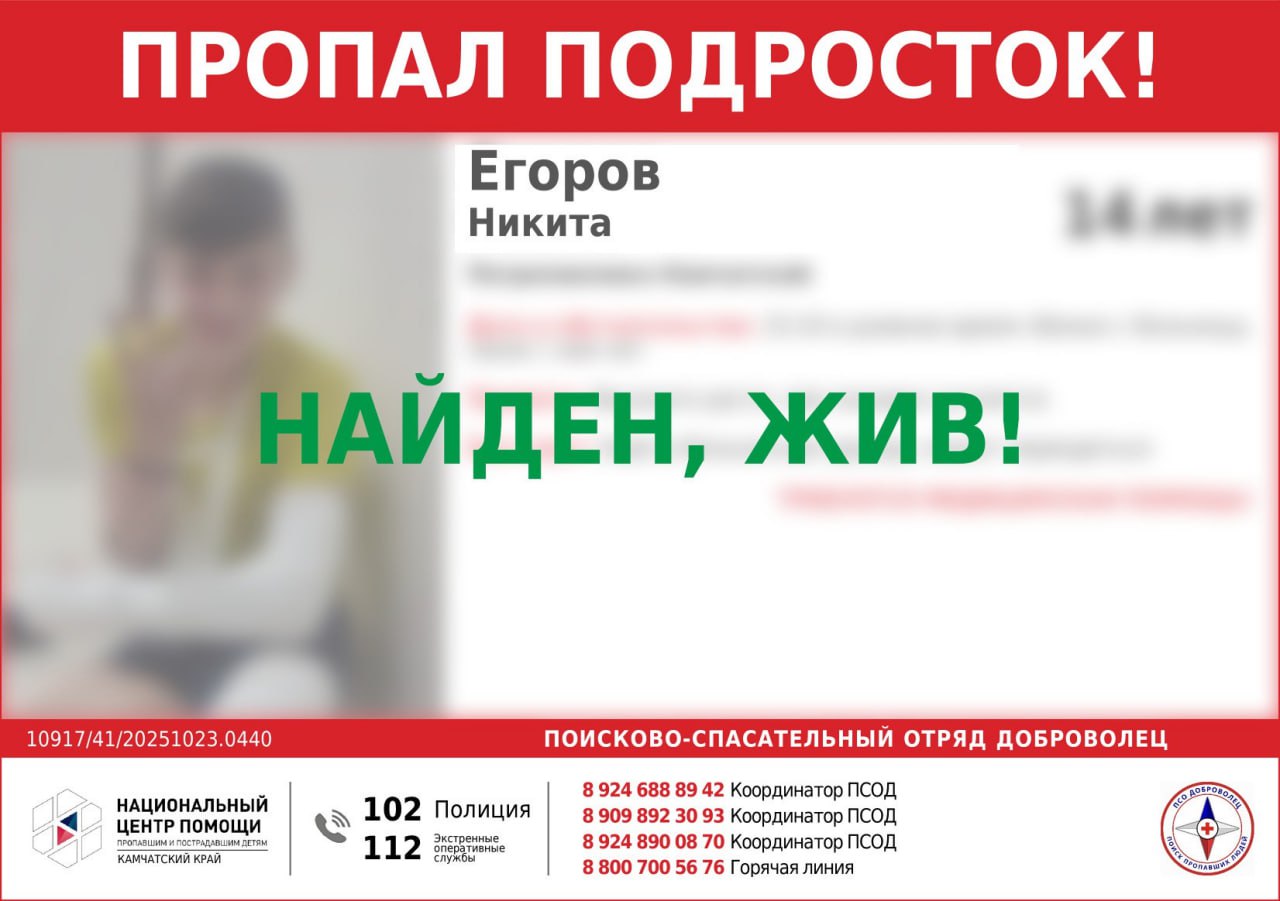 «Никита найден волонтерами поисково-спасательного отряда "Доброволец"», - сообщается в группе поисково-спасательного отряда.