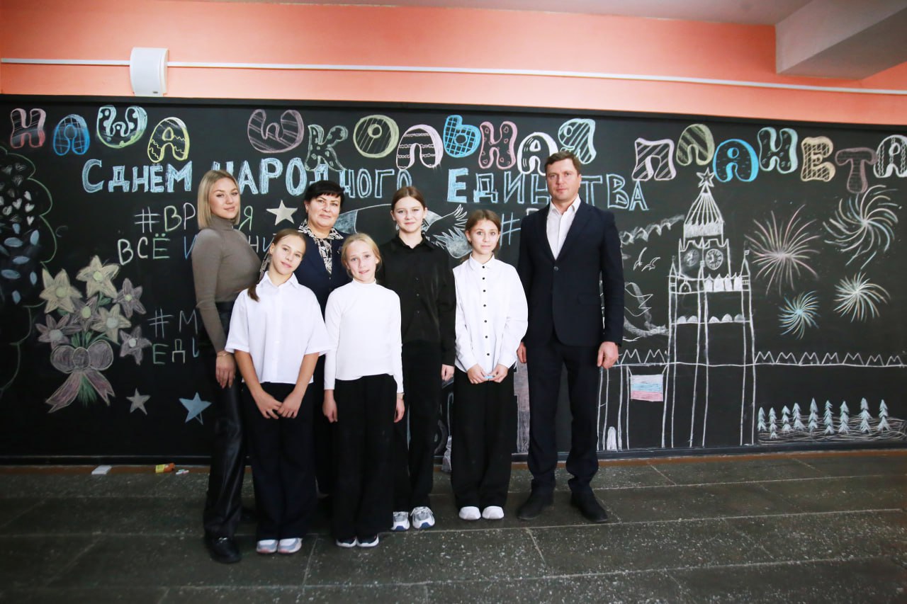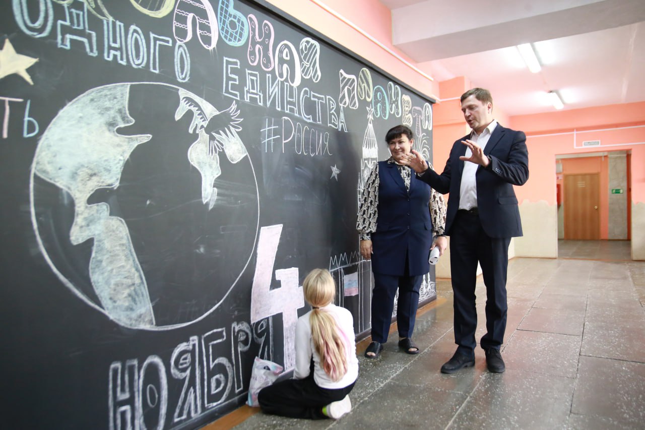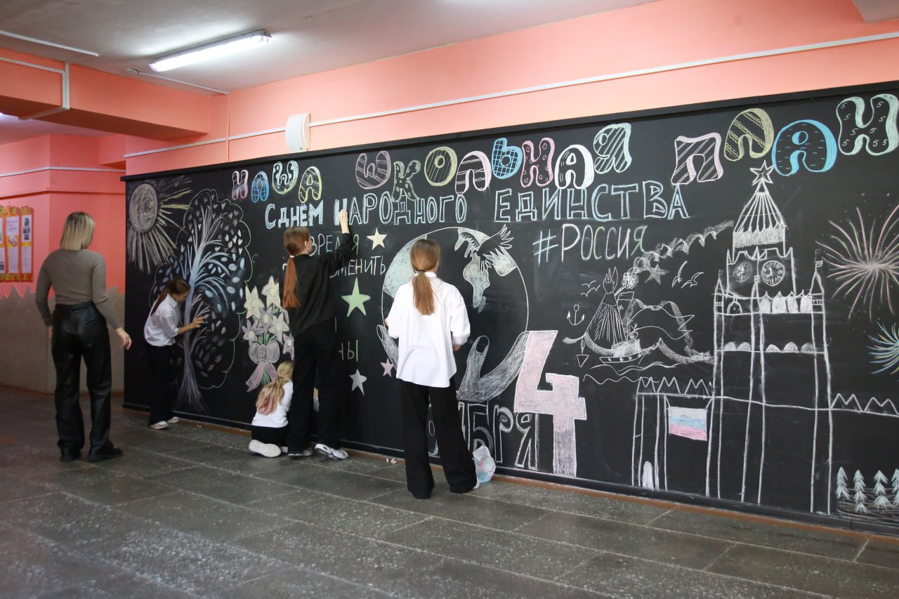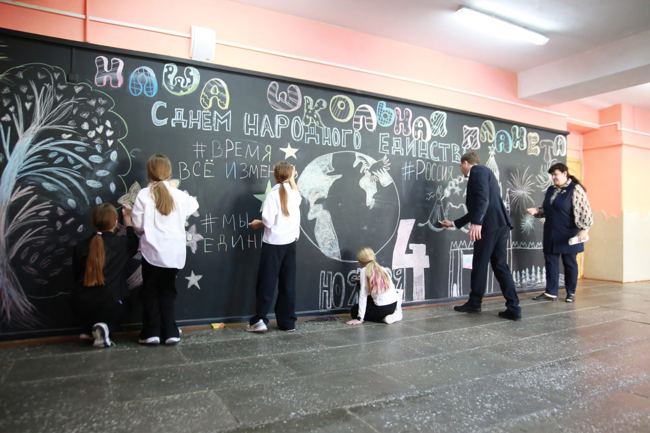 Теперь в блоке начальной школы и холле, где занимаются старшеклассники, большие стены полностью отданы для реализации творческих и художественных талантов учащихся. Они уже были оформлены ко Дню знаний, Дню учителя, Дню рождения Петропавловска-Камчатского. Во время визита парламентария школьники готовились к предстоящему Дню народного единства и рисовали тематические рисунки к празднику.