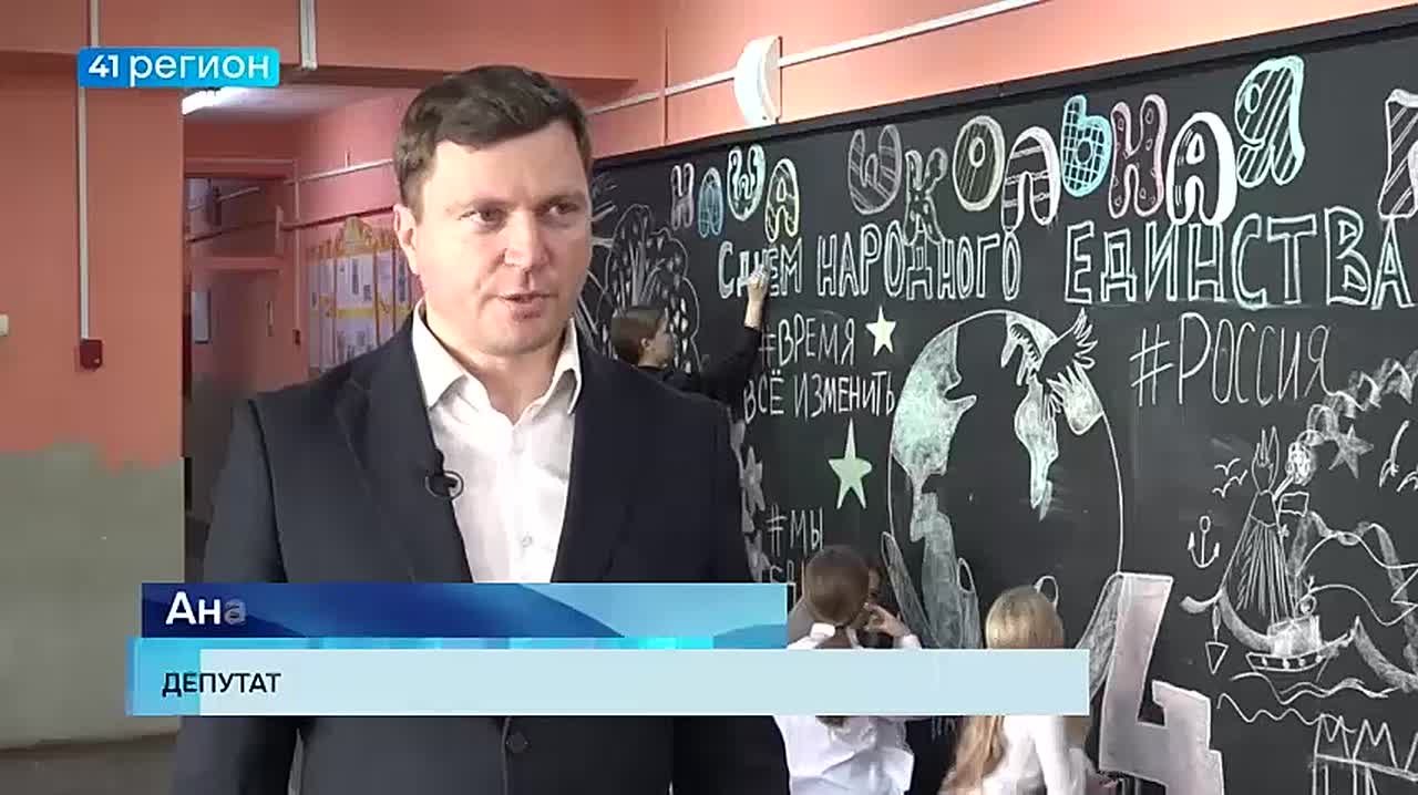 Деньги на её установку выделили из бюджета края в рамках депутатских наказов. Что получилось в итоге, проверил парламентарий Анатолий Кирносенко. Он приехал в школу и принял участие в украшении доски – сейчас ребята расписывают её ко Дню народного единства, передает «41 Регион». Идею руководство школы подсмотрело в главном детском центре России.