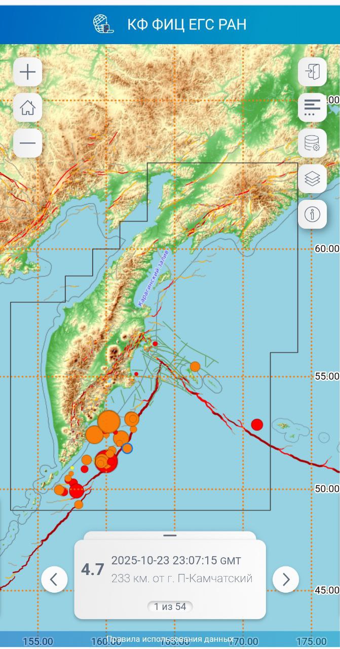 Cейсмическая обстановка в Камчатском крае по состоянию на 24 октября 2025 г.