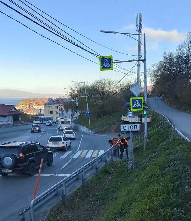 Проводятся работы по установке временных сигнальных вешек в местах расположения барьерного ограждения.