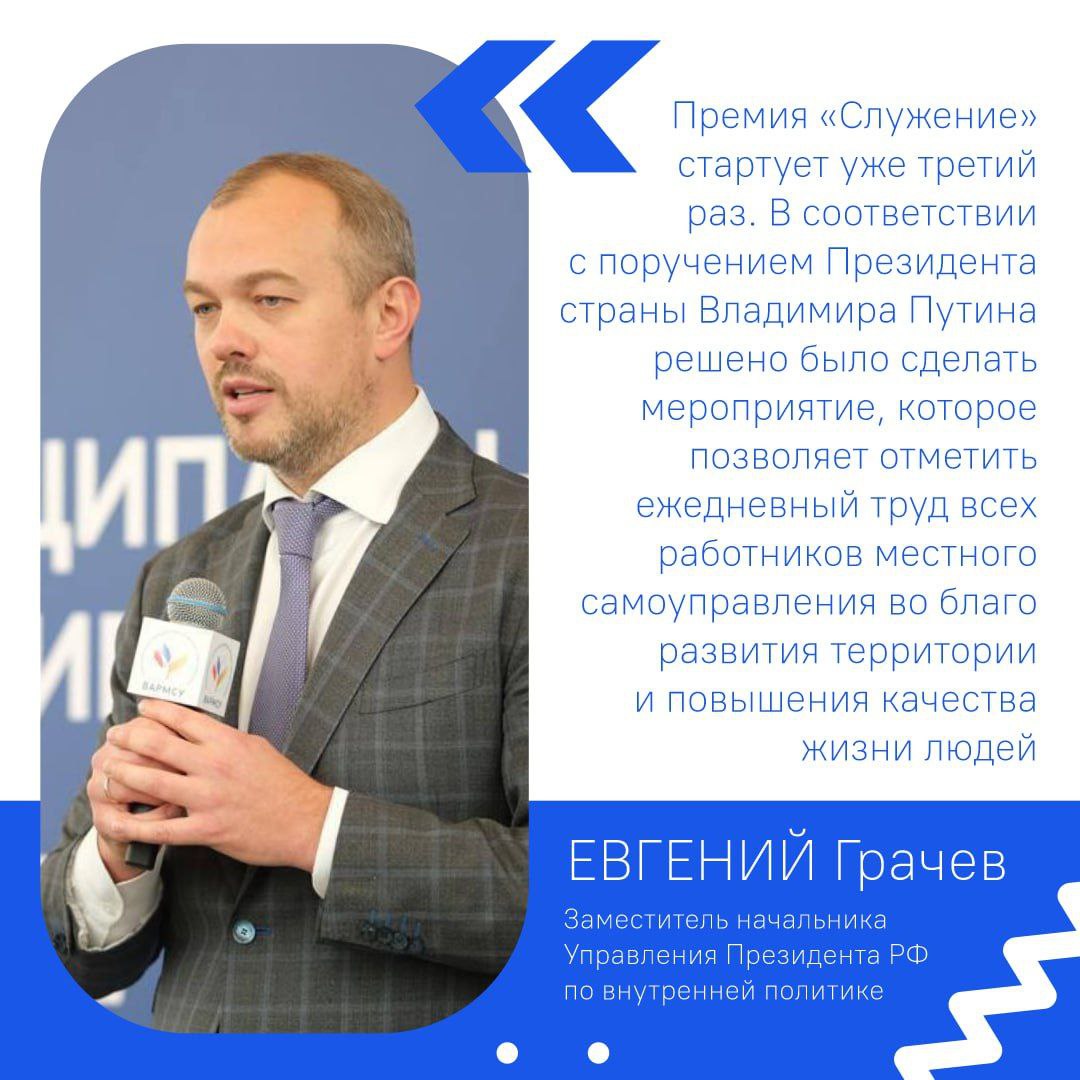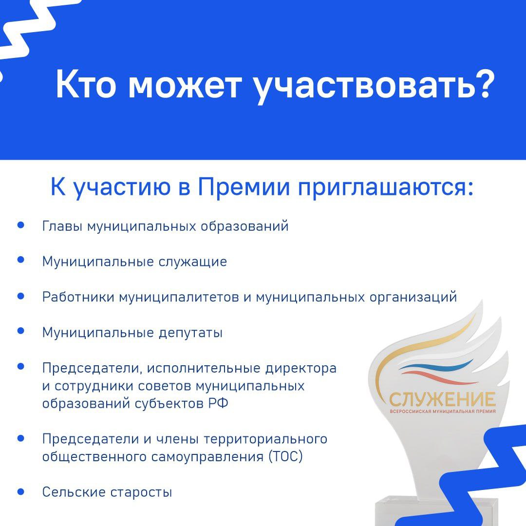 Премия «Служение» направлена на выявление и поощрение выдающихся представителей муниципального сообщества, внесших особый вклад в развитие муниципальных образований и повышение качества жизни граждан.