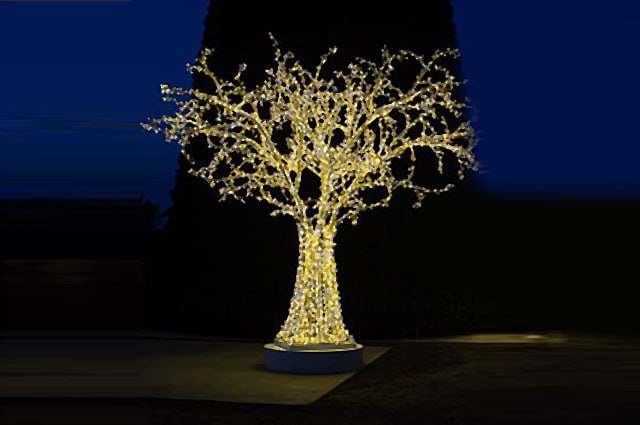 Заказчиком выступает МКУ «Служба благоустройства ПКГО». По контракту деревья высотой 2,5 м и диаметром кроны также в 2,5 м должны светиться в темное время суток. На каждой из 20 ветвей располагается по 6 веточек. Конструкция должна находиться на декоративном подиуме. Светильники необходимо поставить до 30 ноября.