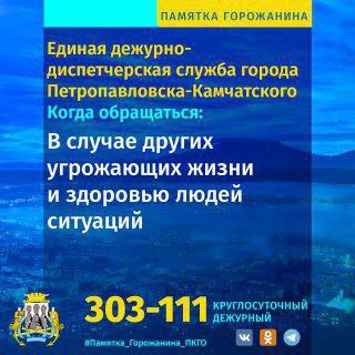 Единая дежурно-диспетчерская служба Петропавловска-Камчатского (ЕДДС) функционирует в круглосуточном режиме.