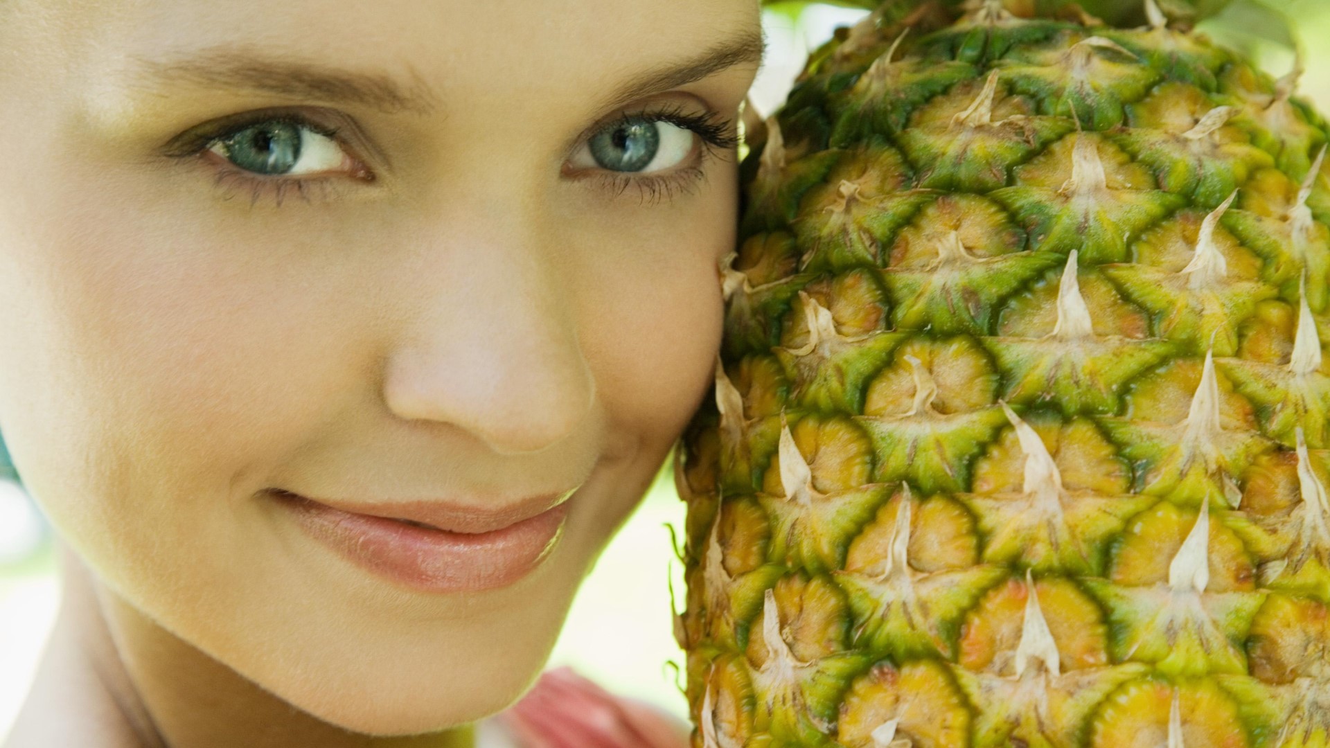 Самые ценные ананасы с точки зрения витаминов — те, что поменьше размером. Их полезные свойства будут очень кстати к зиме. И не нужно бояться, если заметили на корке зеленоватые пятна. Тут важнее ориентироваться на запах — спелый фрукт будет отдавать нотками сладкой земляники. Но почуяв резкий аромат винного брожения, положите его лучше обратно на полку — он уже перезрел.