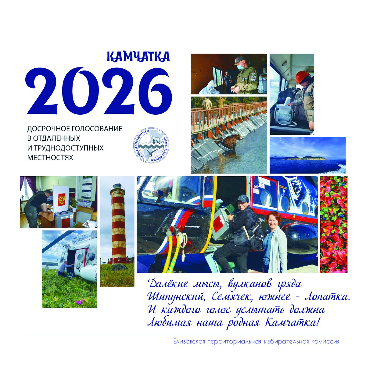 Под таким названием вышел в свет новый настольный календарь на 2026 год под общей реакцией Елизовской территориальной избирательной комиссии. Стоит отметить серьезную подготовительную работу, которую провела территориальная избирательная комиссия по подготовке и организации досрочного голосования в труднодоступных местностях на выборах Президента Российской Федерации и Губернатора Камчатского края.