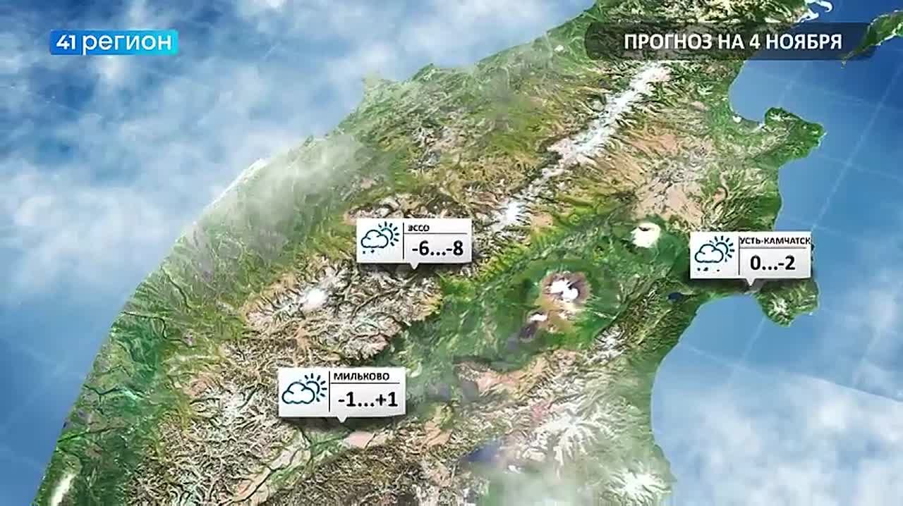 В Елизове и Вилючинске переменная облачность, без осадков. Преобладающая температура днём +1, 3. В Петропавловске-Камчатском переменная облачность, без осадков. После полудня +1, 3.