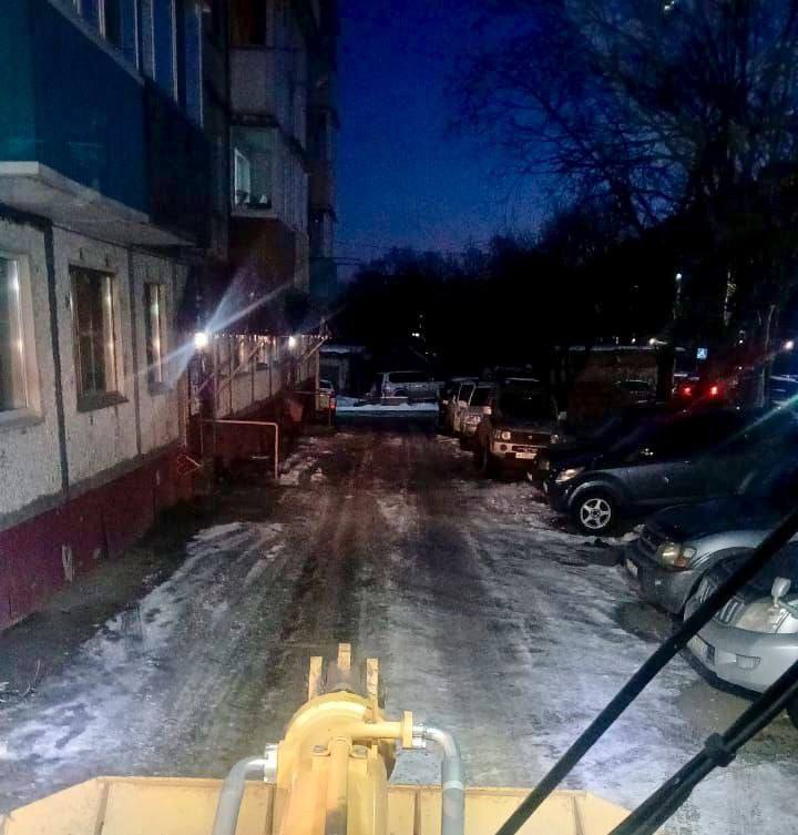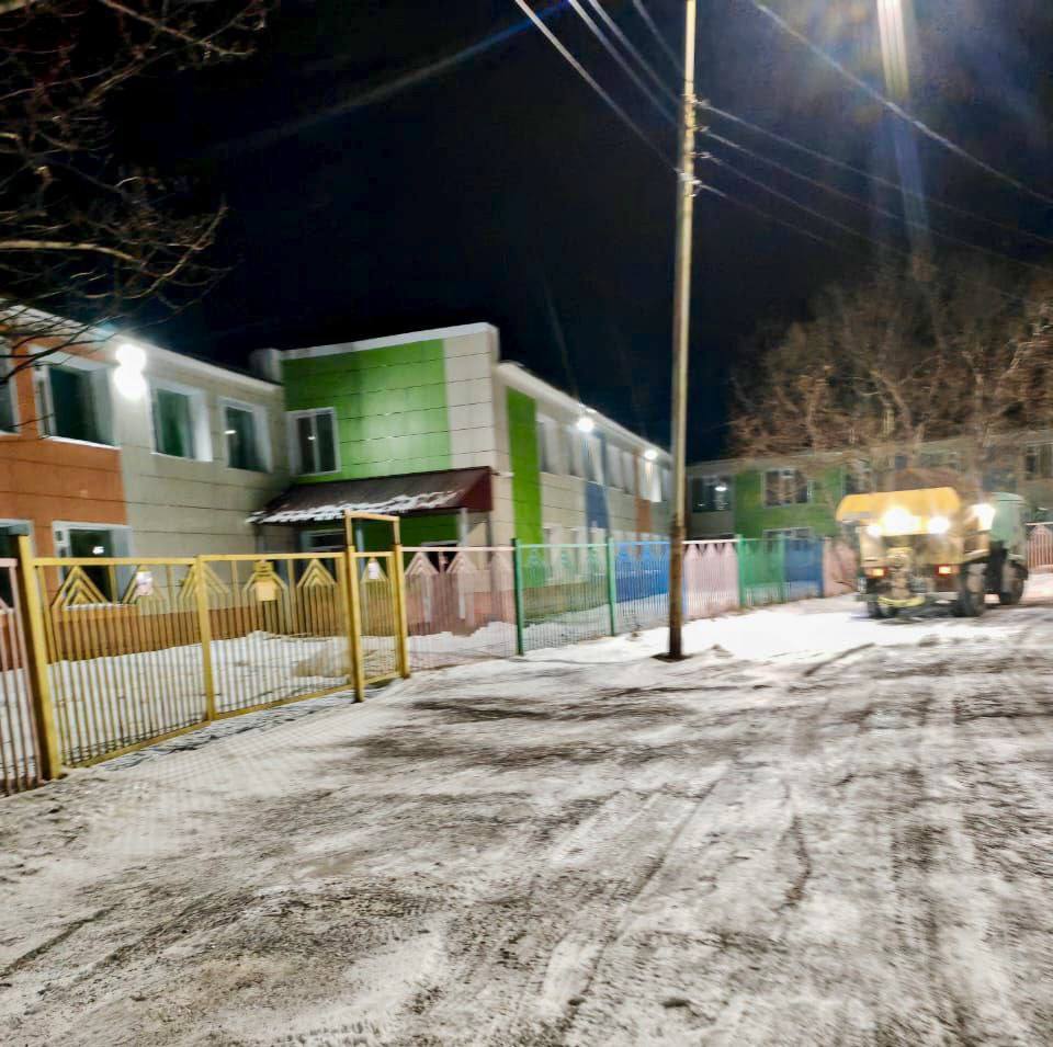 Город день за днём9 ноября 2025 годаПодрядные организации продолжают расчистку и обработку противогололедными материалами межквартальных проездов и придомовых территорий.#зимнее_содержание_ПКГО#работаем