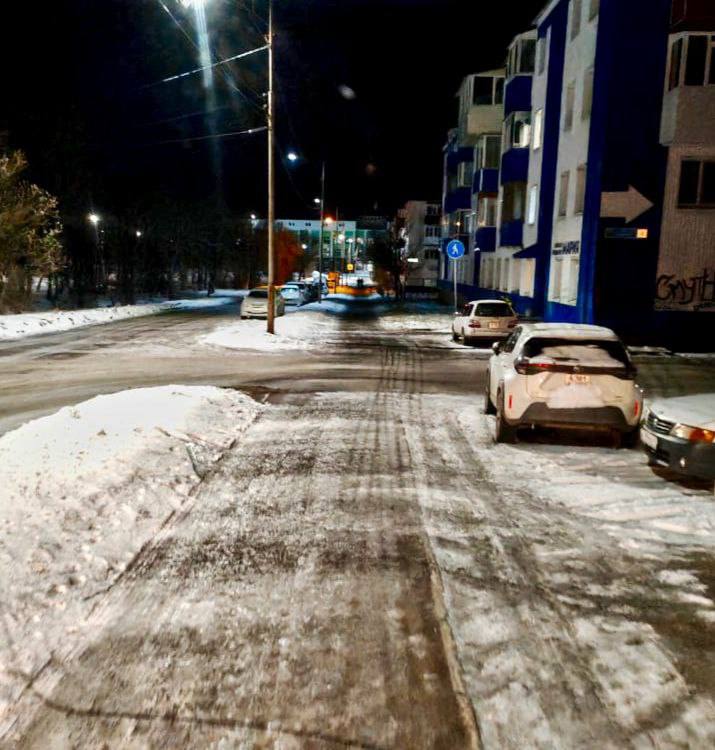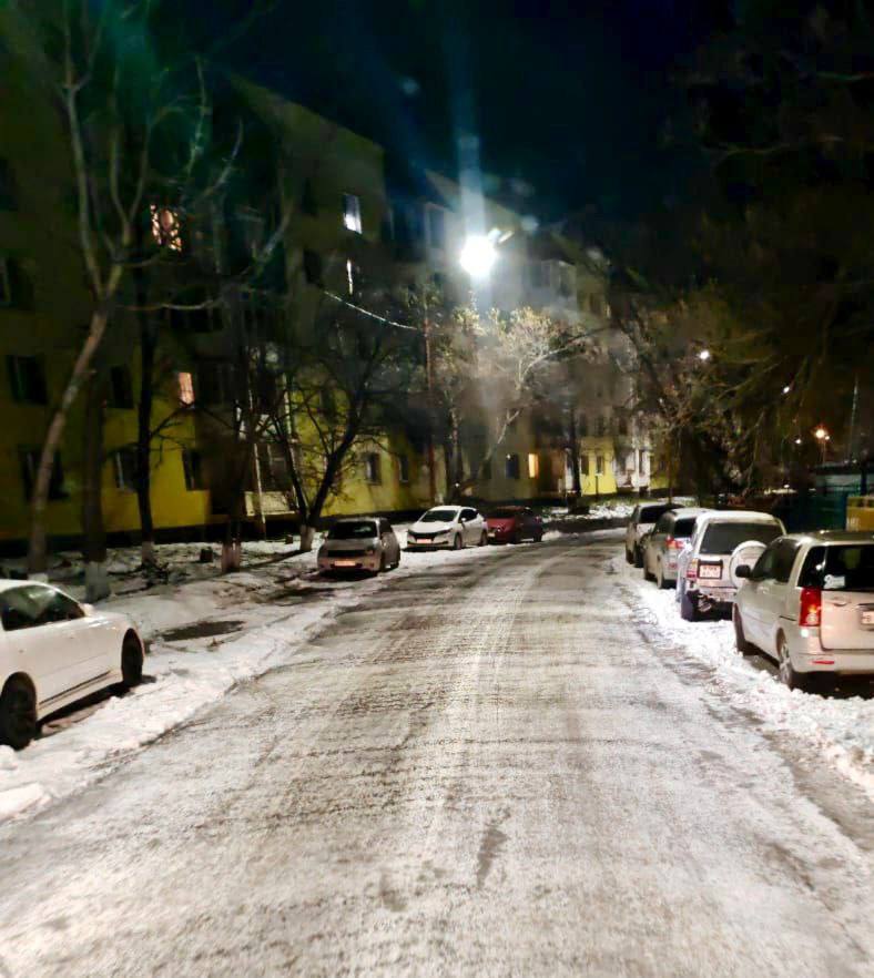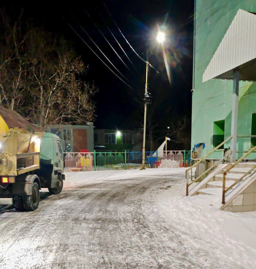 Город день за днём. 9 ноября 2025 года Подрядные организации продолжают расчистку и обработку противогололедными материалами межквартальных проездов и придомовых территорий