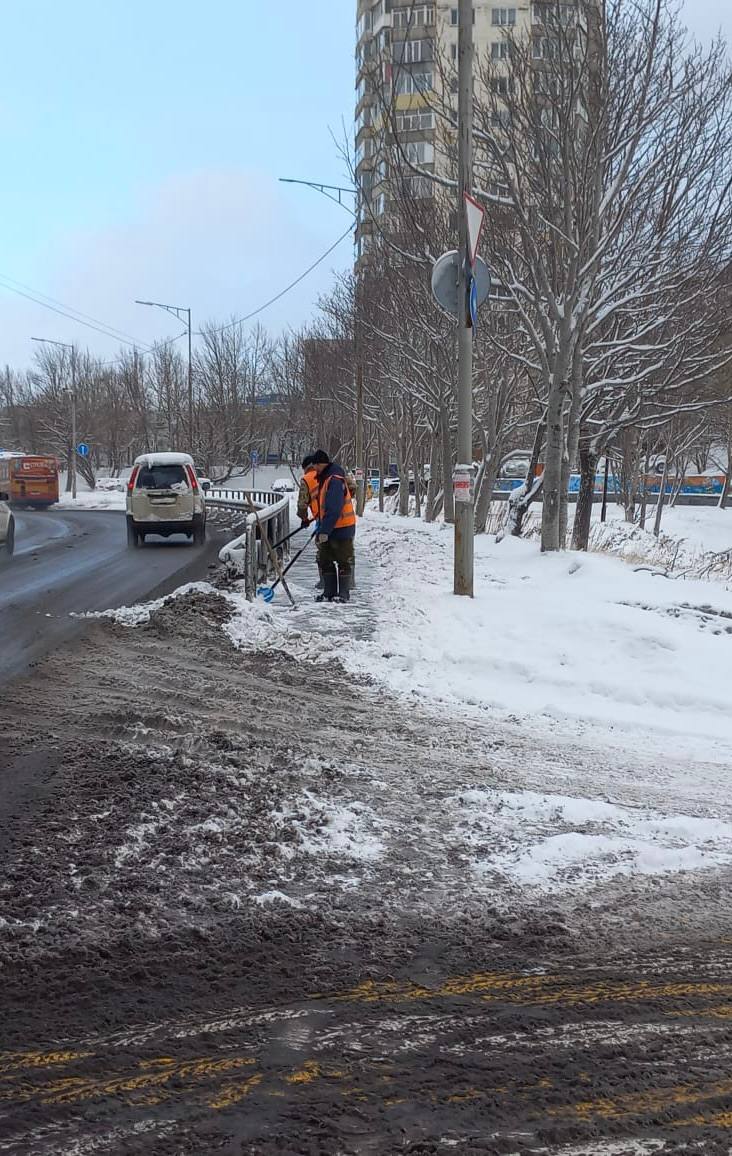 В Петропавловске-Камчатском дорожные службы продолжают ликвидацию последствий циклона.