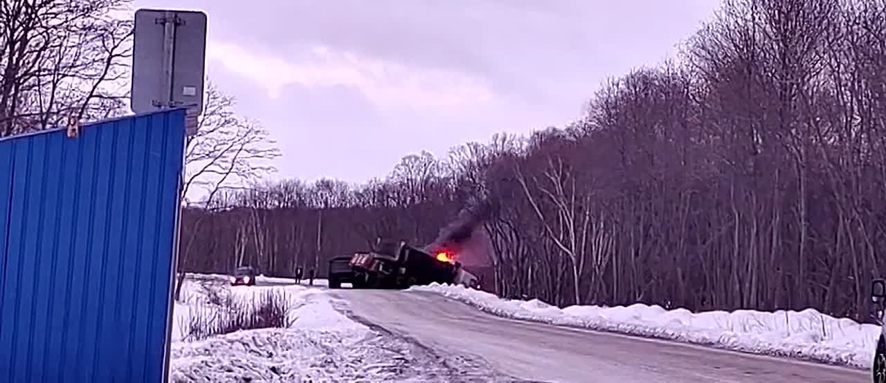 «Недалеко от МТФ. КАМАЗ шёл с океана с песком, его занесло и он вылетел на встречку. Дорога очень скользкая», — сообщают очевидцы ДТП.