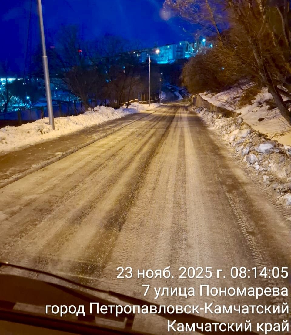 Город день за днём. 23 ноября 2025 года Дорожные службы продолжают работу по обработке противогололедными материалами на внутриквартальных проездах и в частном секторе