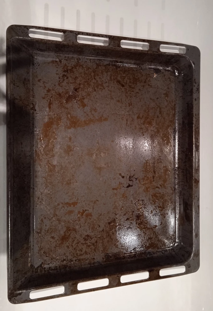 Доказано, что кислота, содержащаяся в луке, помогает разъедать нагар, а сахар действует как мягкий абразив, эффективно удаляя загрязнения. Обязательно промойте противень после очистки, чтобы удалить остатки сахара и протереть его до блеска.