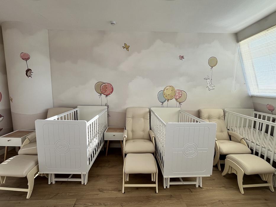 Комната рассчитана на детей в возрасте до семи лет. В ней оборудовали зоны для кормления, игр и отдыха. Также есть пеленальная и прачечная.