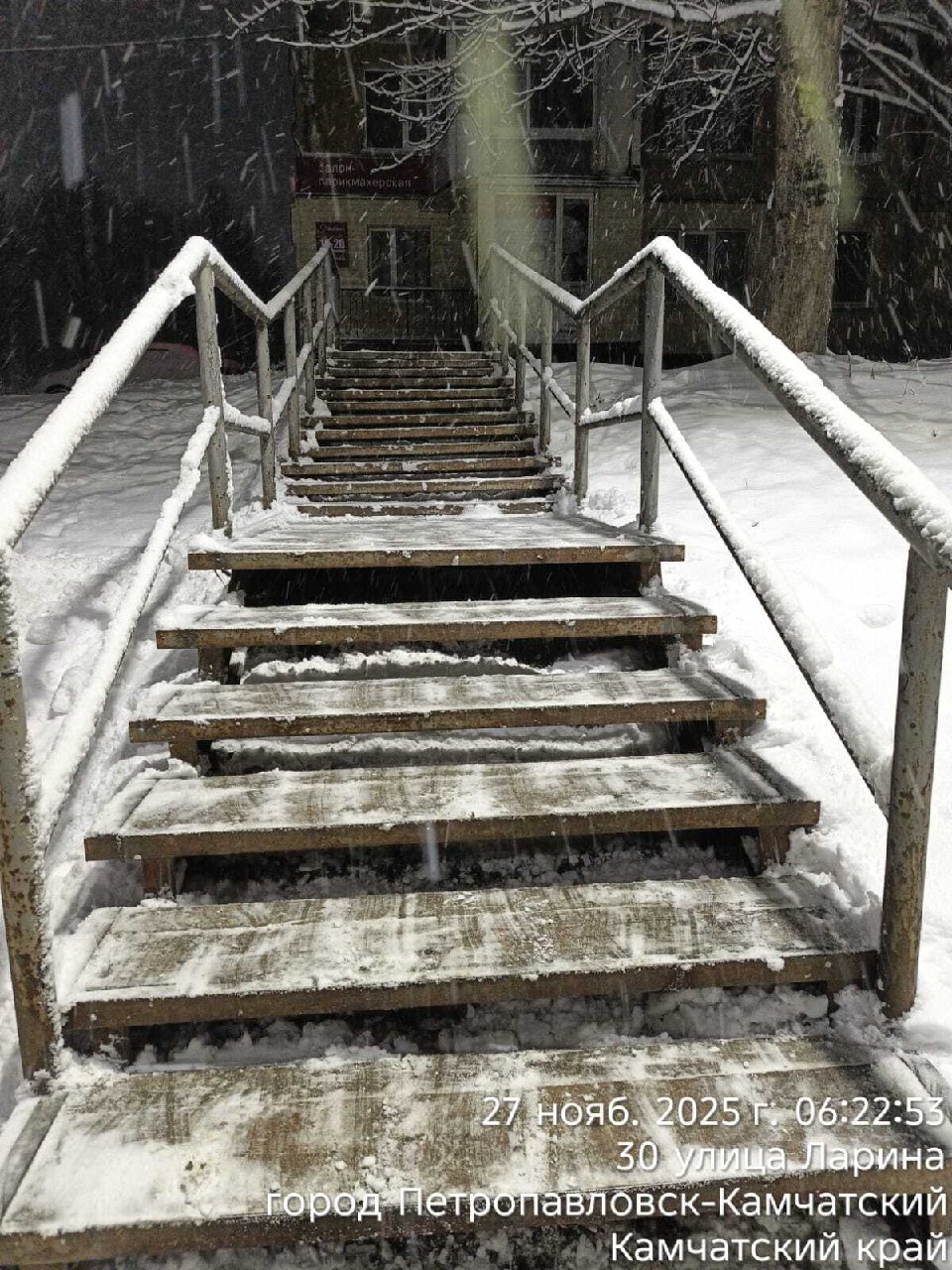 Проводится расчистка тротуаров, мест общего пользования, также лестничных переходов.