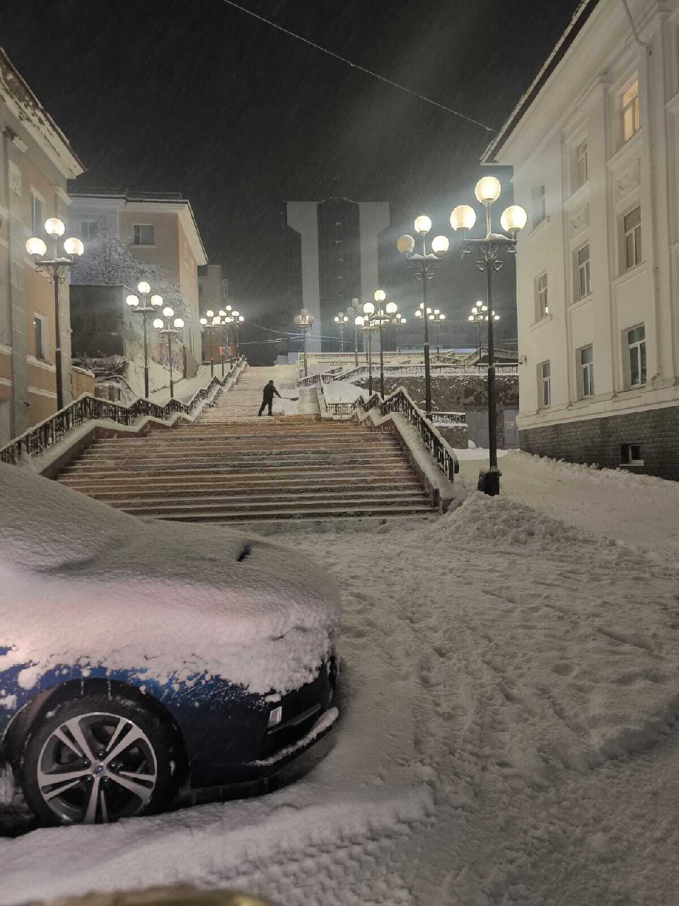 В Петропавловске-Камчатском подрядные организации Службы благоустройства работают с раннего утра.