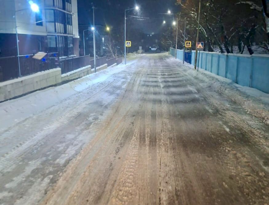 Дорожные службы в ночную смену и рано утром расчищают обрабатывают противогололедными материалами внутриквартальные проезды, придомовые территории.