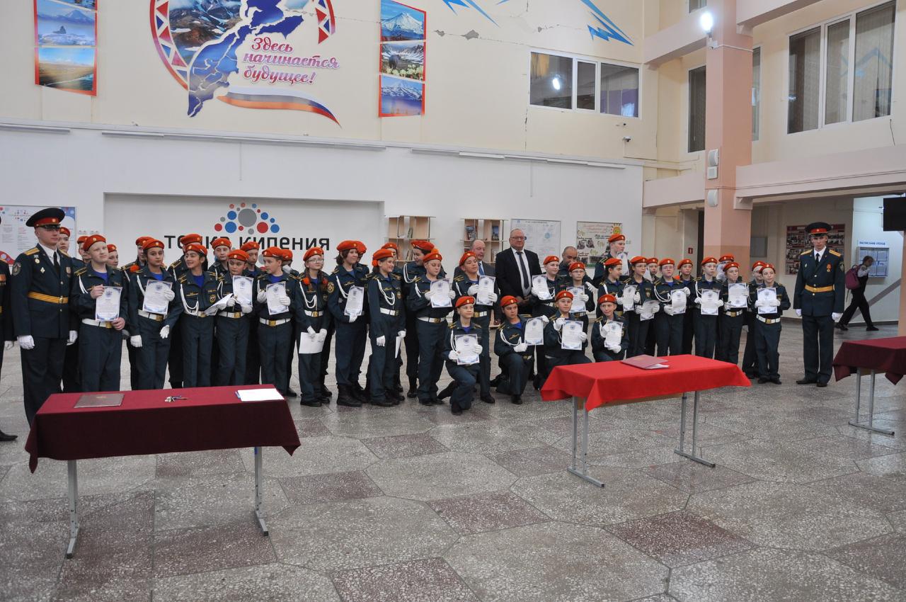 На базе МАОУ «Средняя школа № 45» в Петропавловске-Камчатском прошла торжественная церемония «Принятие клятвы кадетов МЧС» учащимися предпрофильного пятого класса.