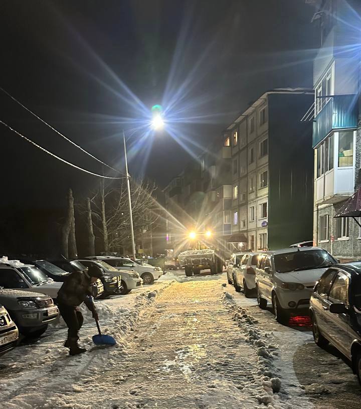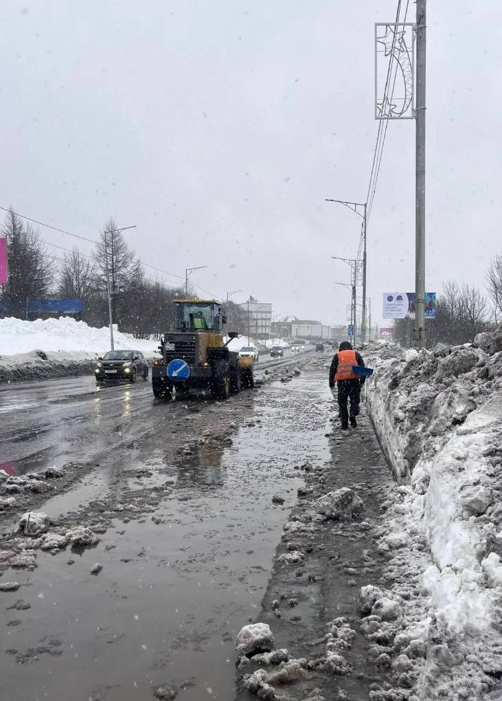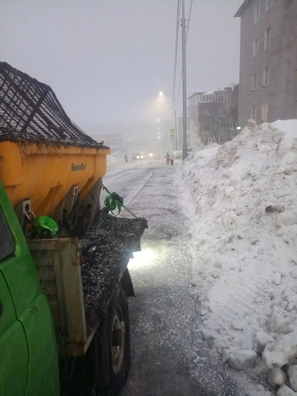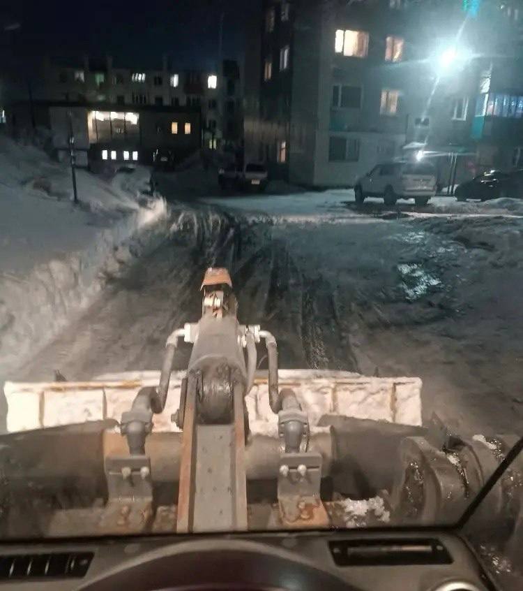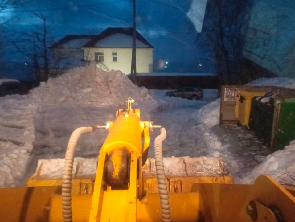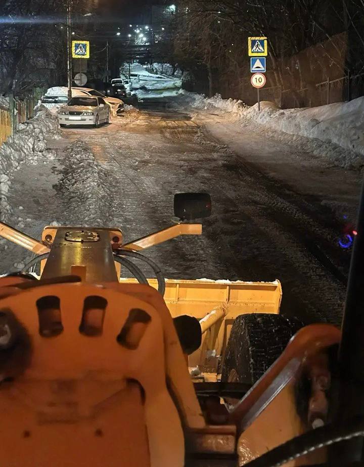 В ночную смену подрядные организации расчищали магистральные и внутриквартальные проезды.