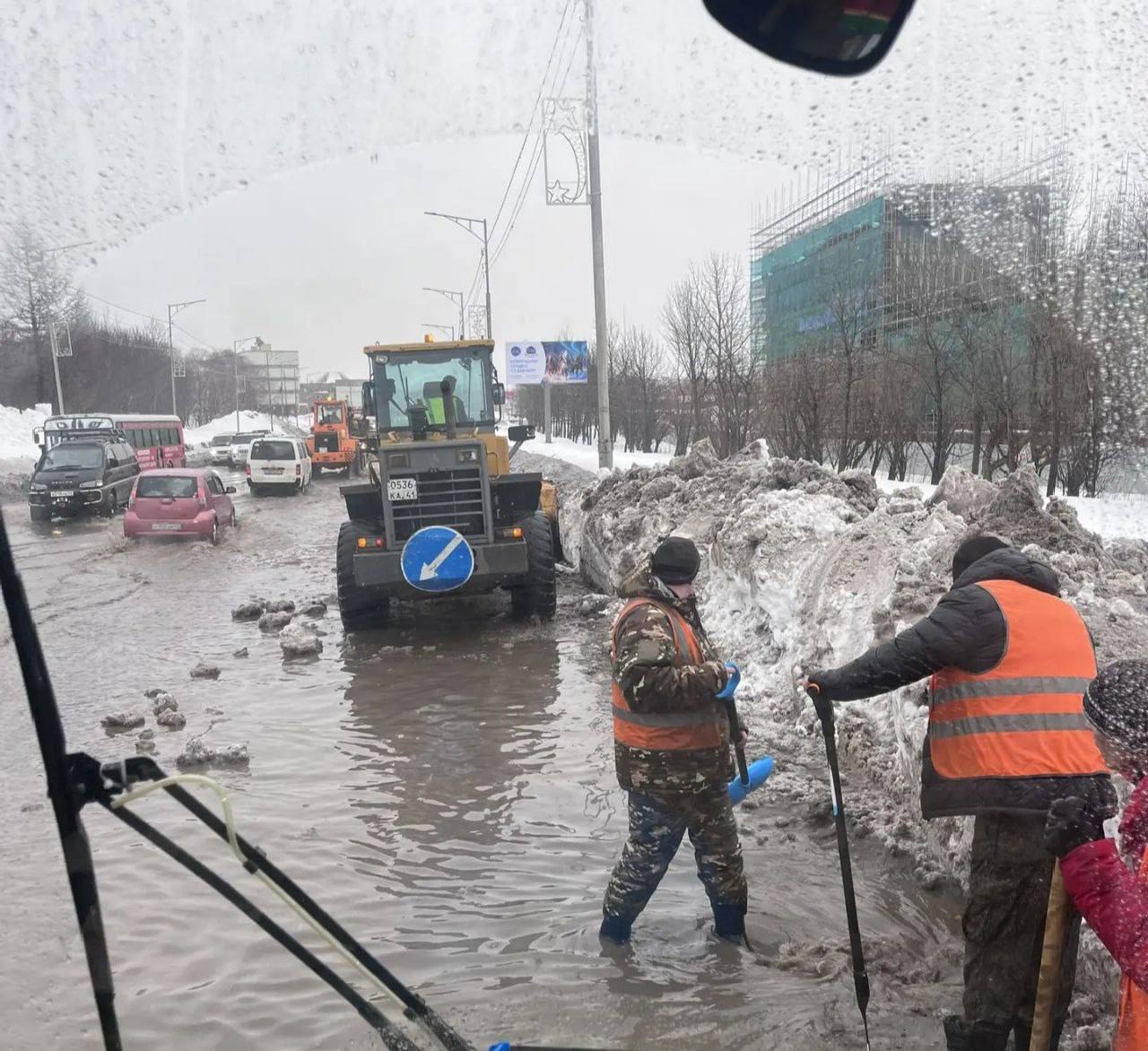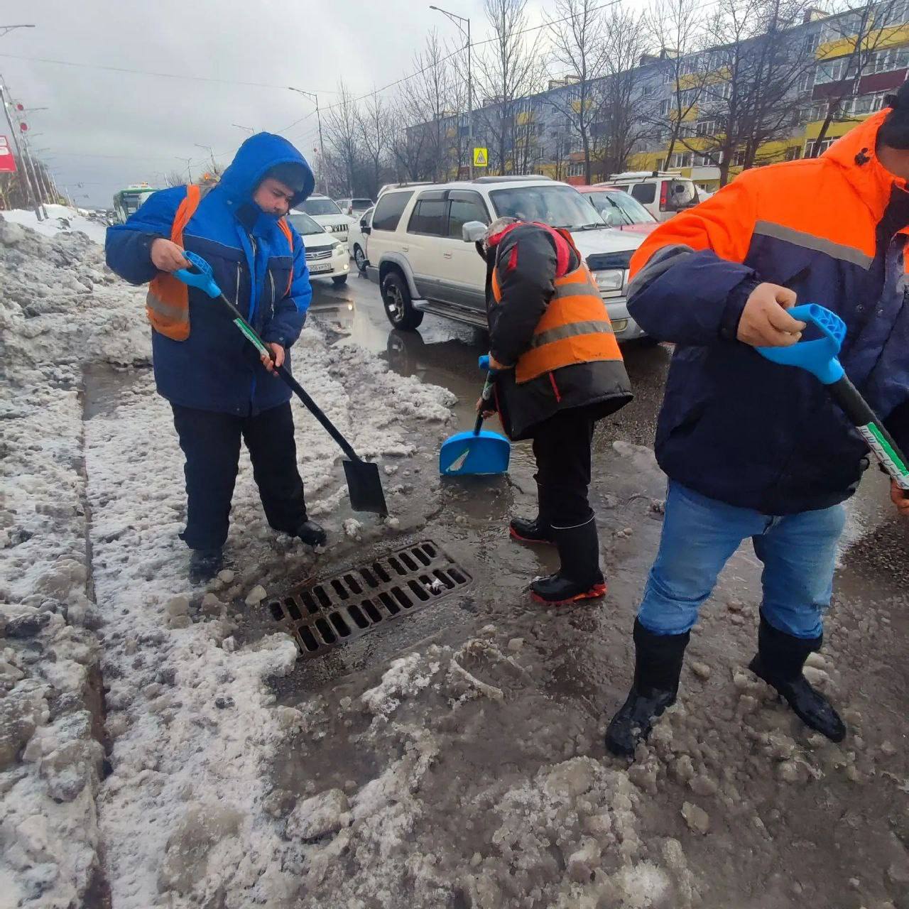 В связи с тем, что шуга забивает ливневки, бригады несколько раз работают на одних и тех же участках.