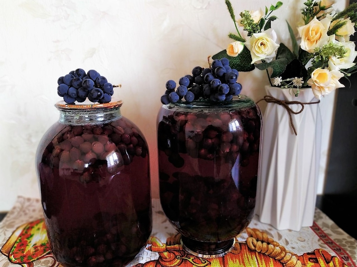 6. Закатайте банки и утеплите их. Компот из винограда Изабелла готов к подаче и порадует своими вкусом и ароматом всех, кто его попробует!