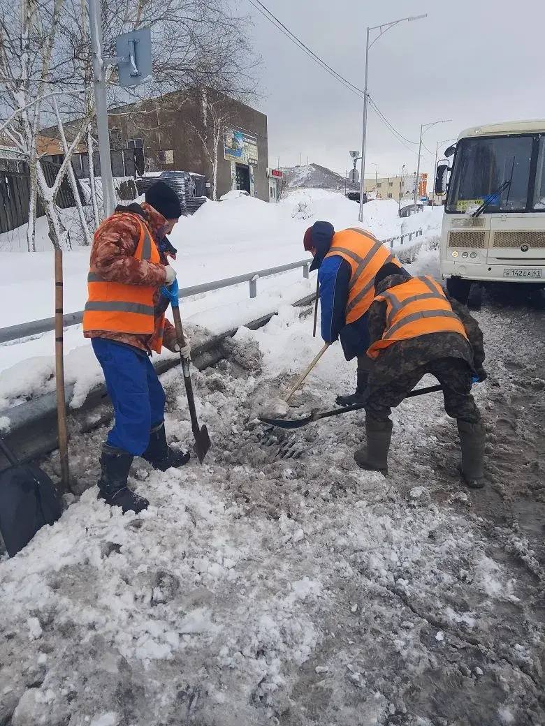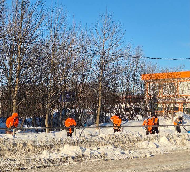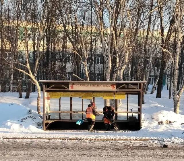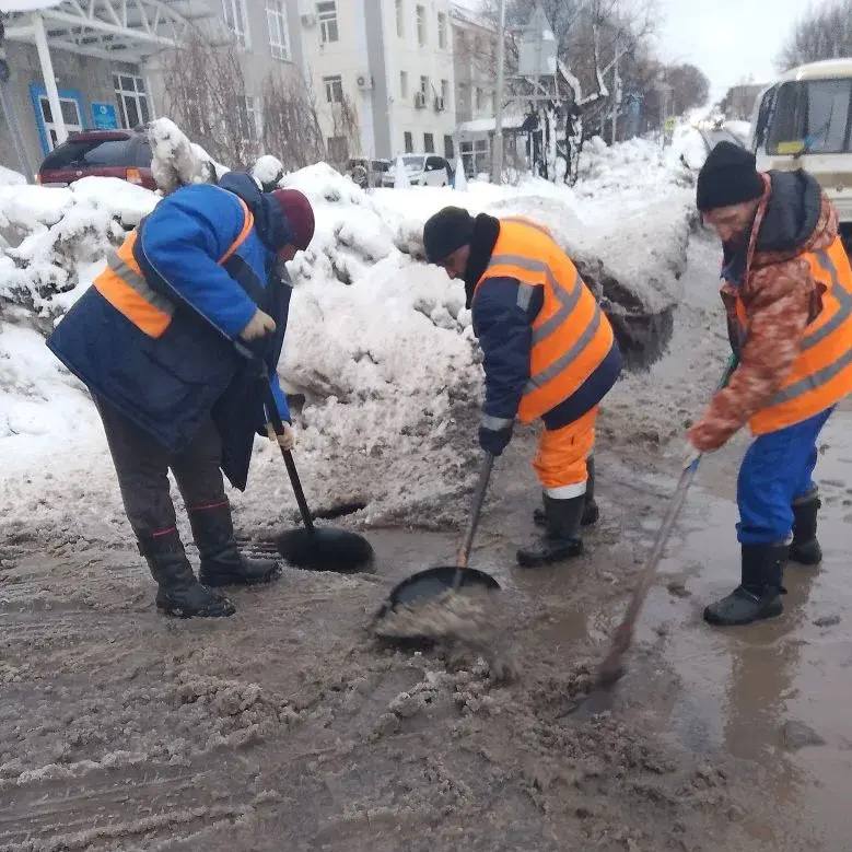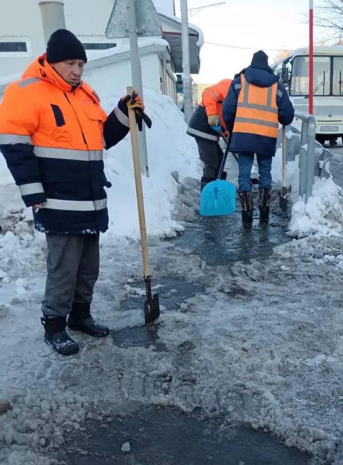 Бригады ручного труда очищают автобусные остановки, тротуары, решетки ливневых канализаций.