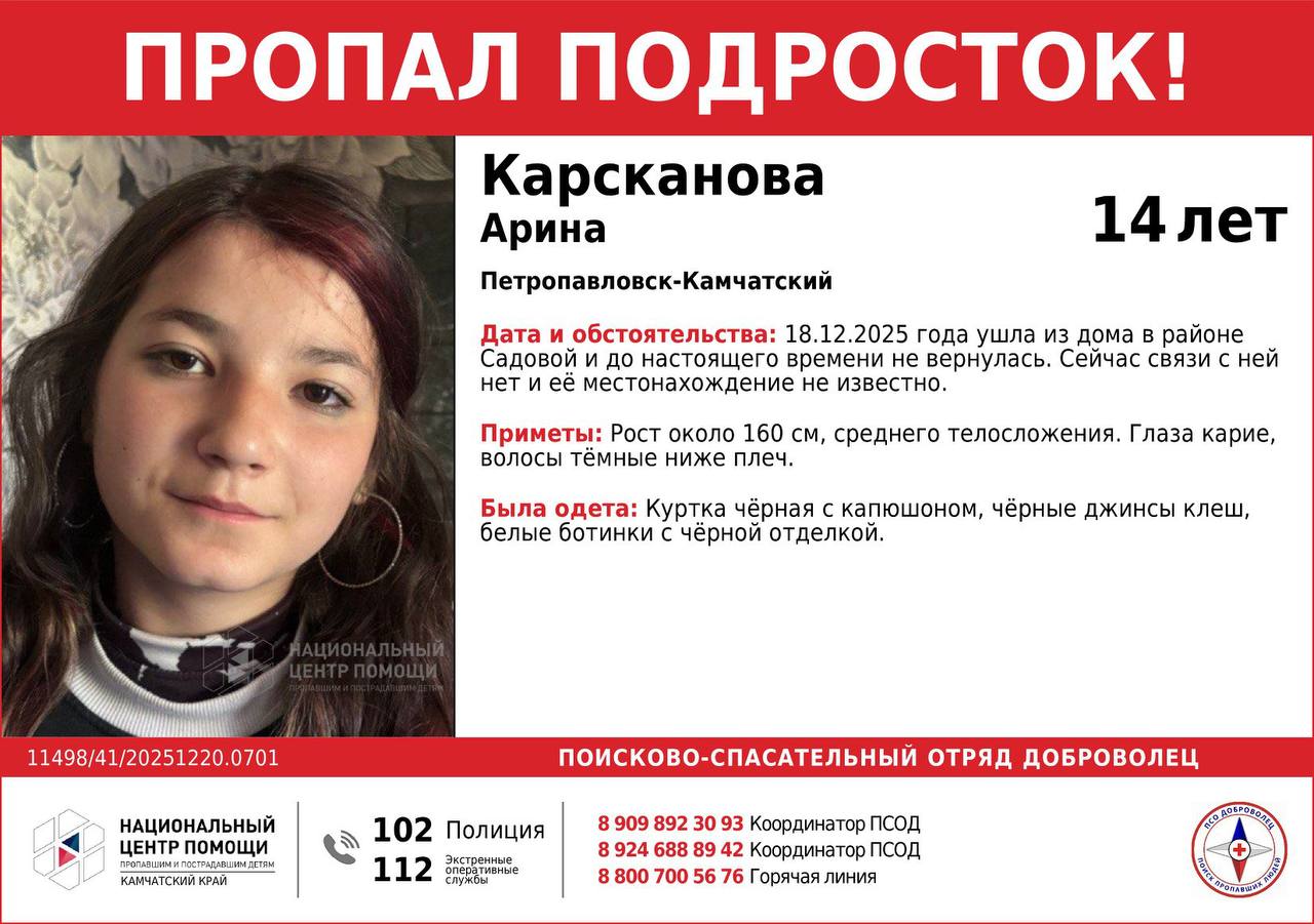Если вы знаете, где сейчас находится Арина, звоните на единый номер экстренных служб 112, в полицию 102 или по телефонам поисково-спасательного отряда «Доброволец», указанным в ориентировке.