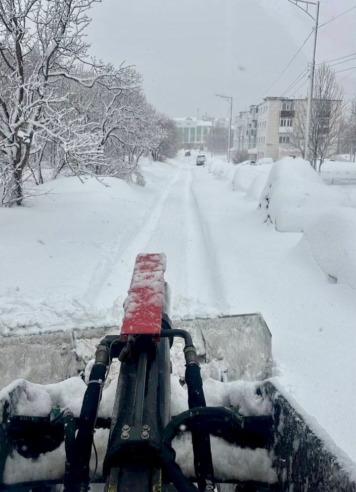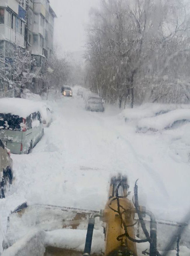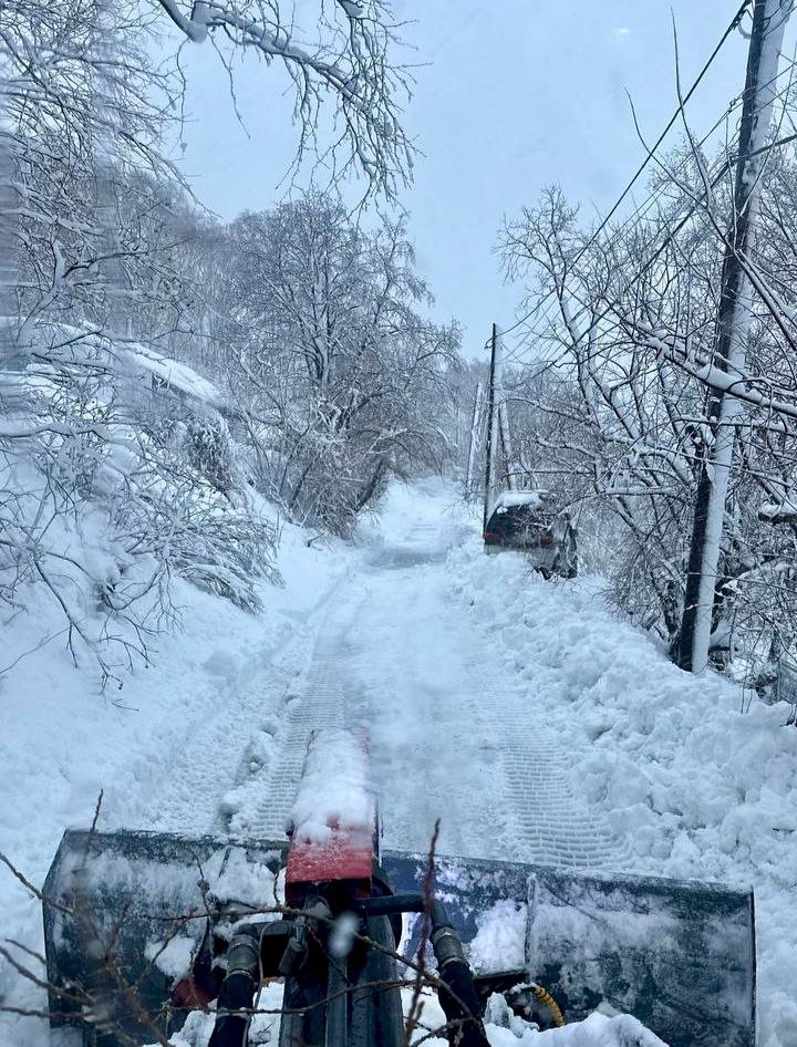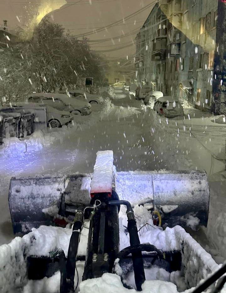 Подрядные организации проводят расчистку внутриквартальных проездов.