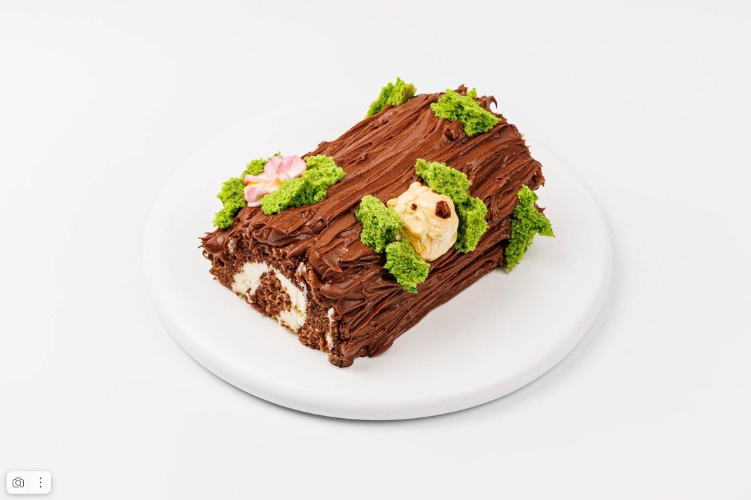- Основа: Мягкий бисквит, наполненный ароматом ванили и какао, создающий удивительный рулет в виде 'полена'.