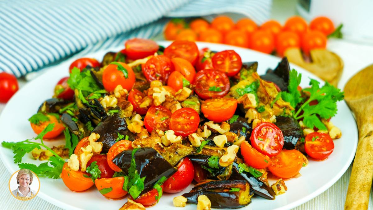 Этот салат с баклажанами и помидорами порадует не только вкусом, но и визуальной привлекательностью. Нежные, испеченные овощи в сочетании со свежестью зелени и хрустом орехов создают отличное угощение для любого стола. Приятного аппетита!