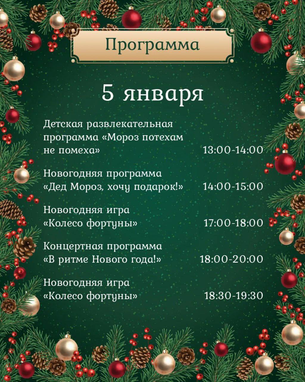 - 16:00 – новогодняя игра «Колесо фортуны».