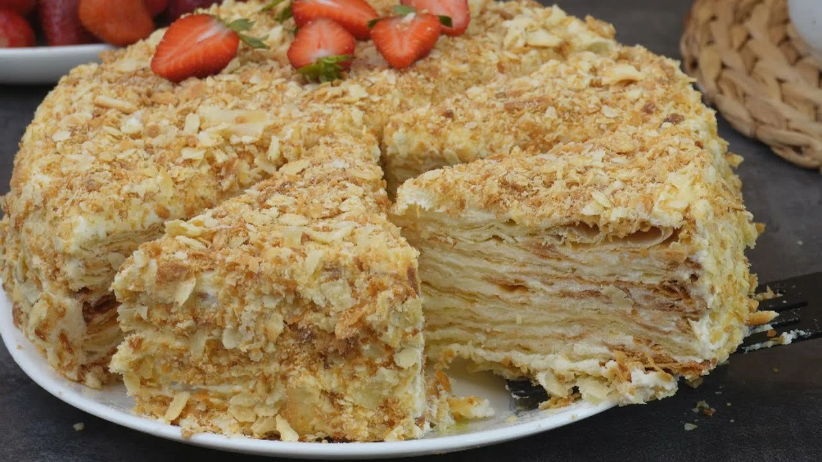 Классический «Наполеон» — это сочетание тонкого слоеного теста и сливочного крема, который обычно готовится на основе ванили или клубники. Современные версии торта часто используют покупные коржи, что значительно упрощает процесс приготовления. Традиционно торт состоит из 8–12 коржей, которые настаиваются минимум 4-6 часов, а лучше — на ночь, чтобы текстура стала мягкой и кремовой.