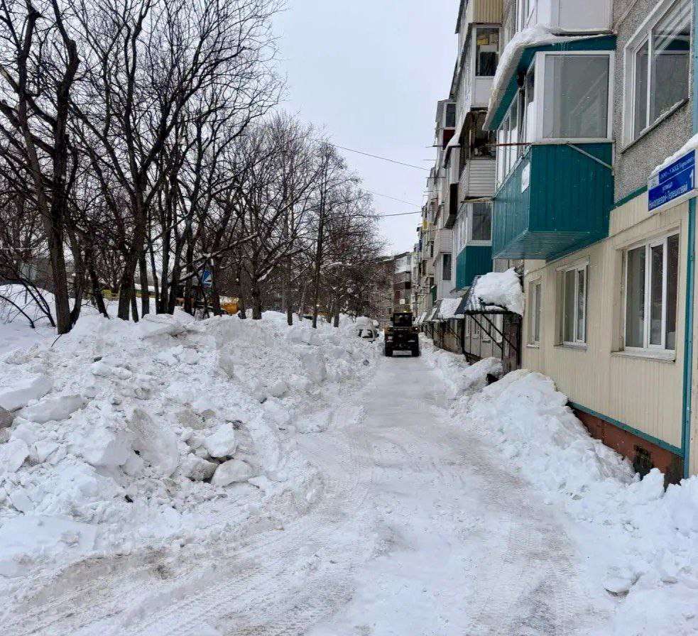Дорожные службы продолжают работы по расчистке и вывозу снега с внутриквартальных проездов и придомовых территорий.