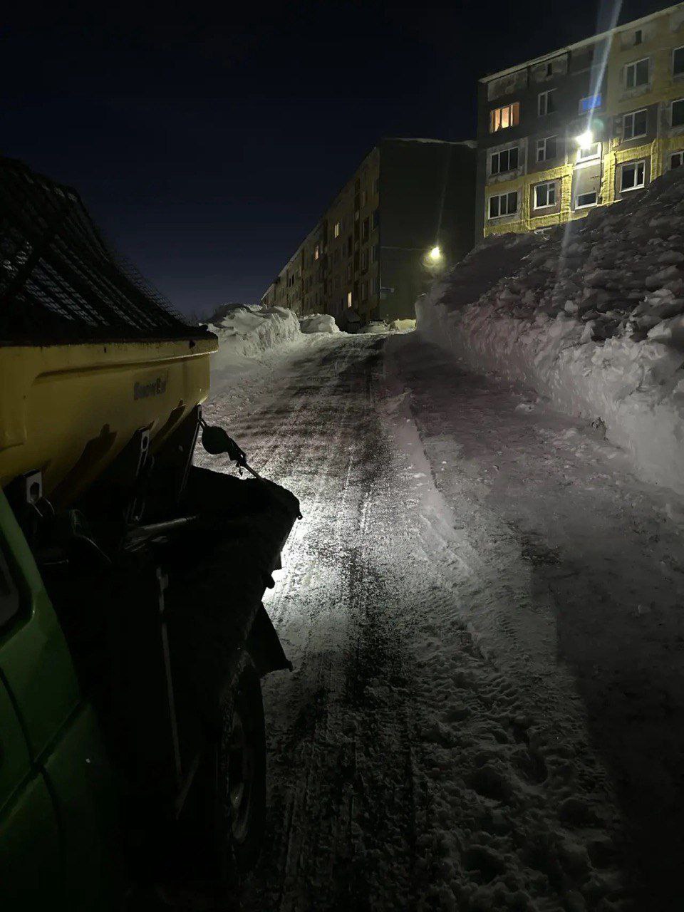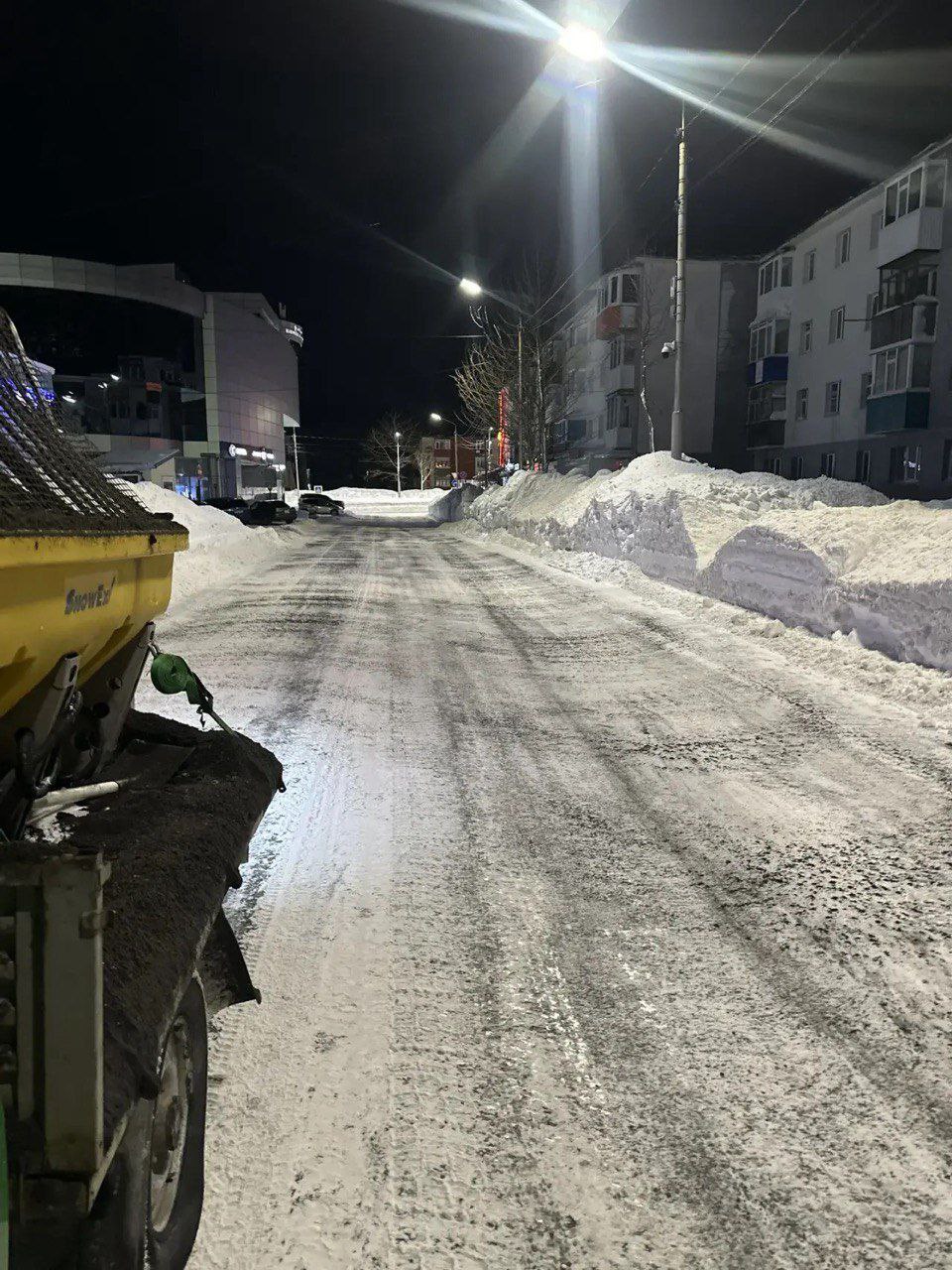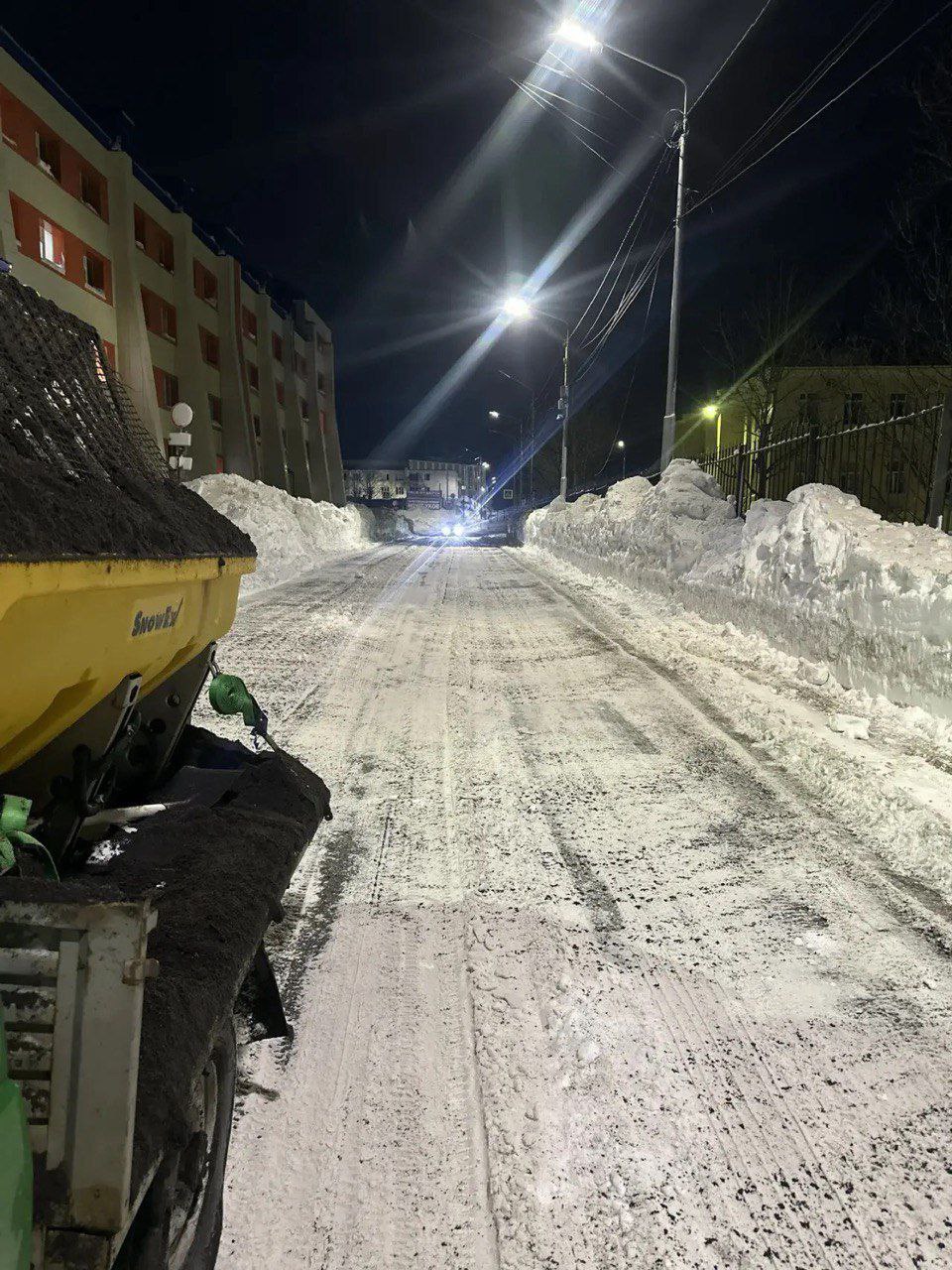 Подрядные организации расчищают и обрабатывают противогололедными материалами внутриквартальные проезды.