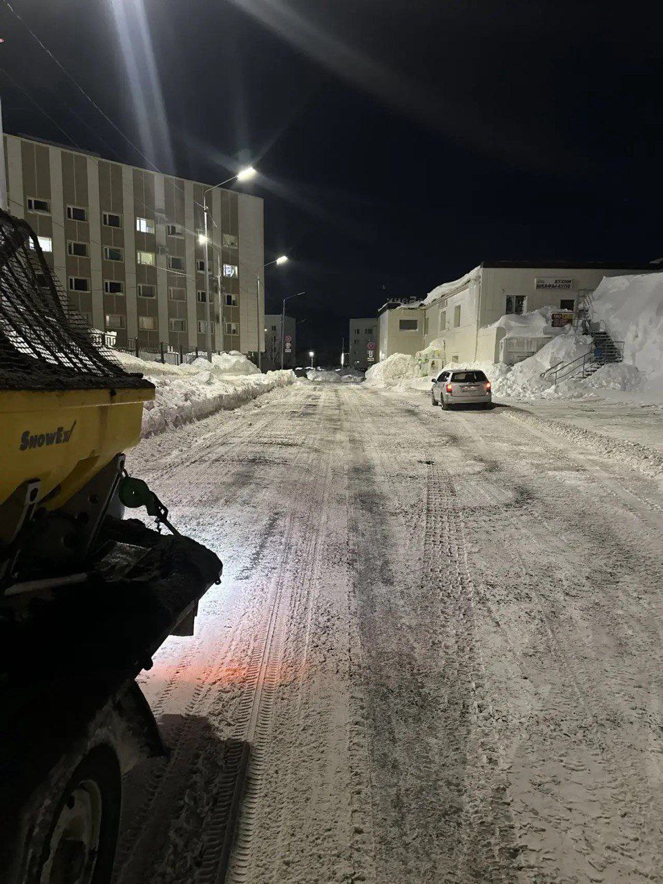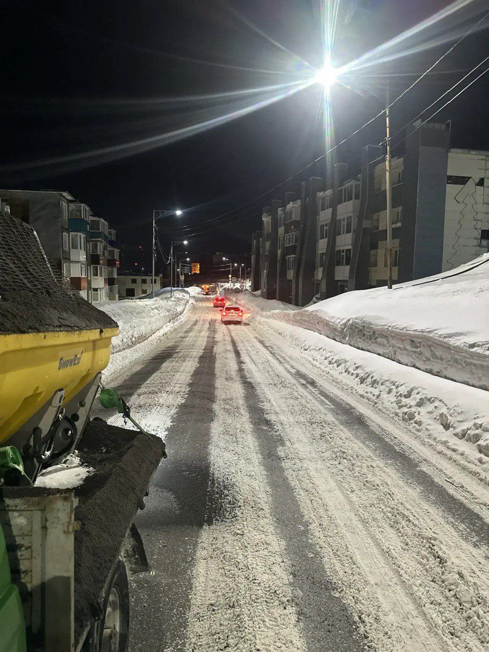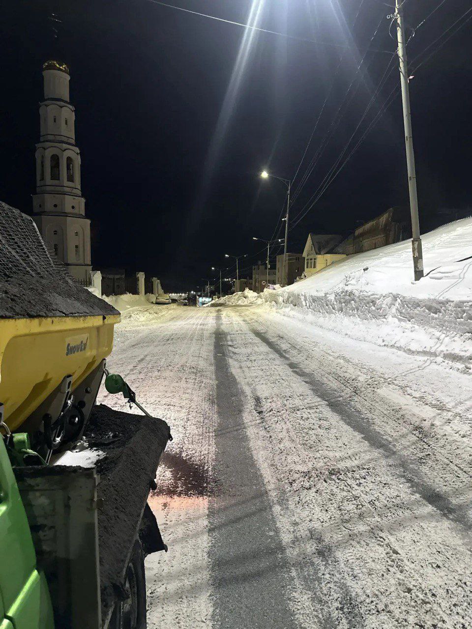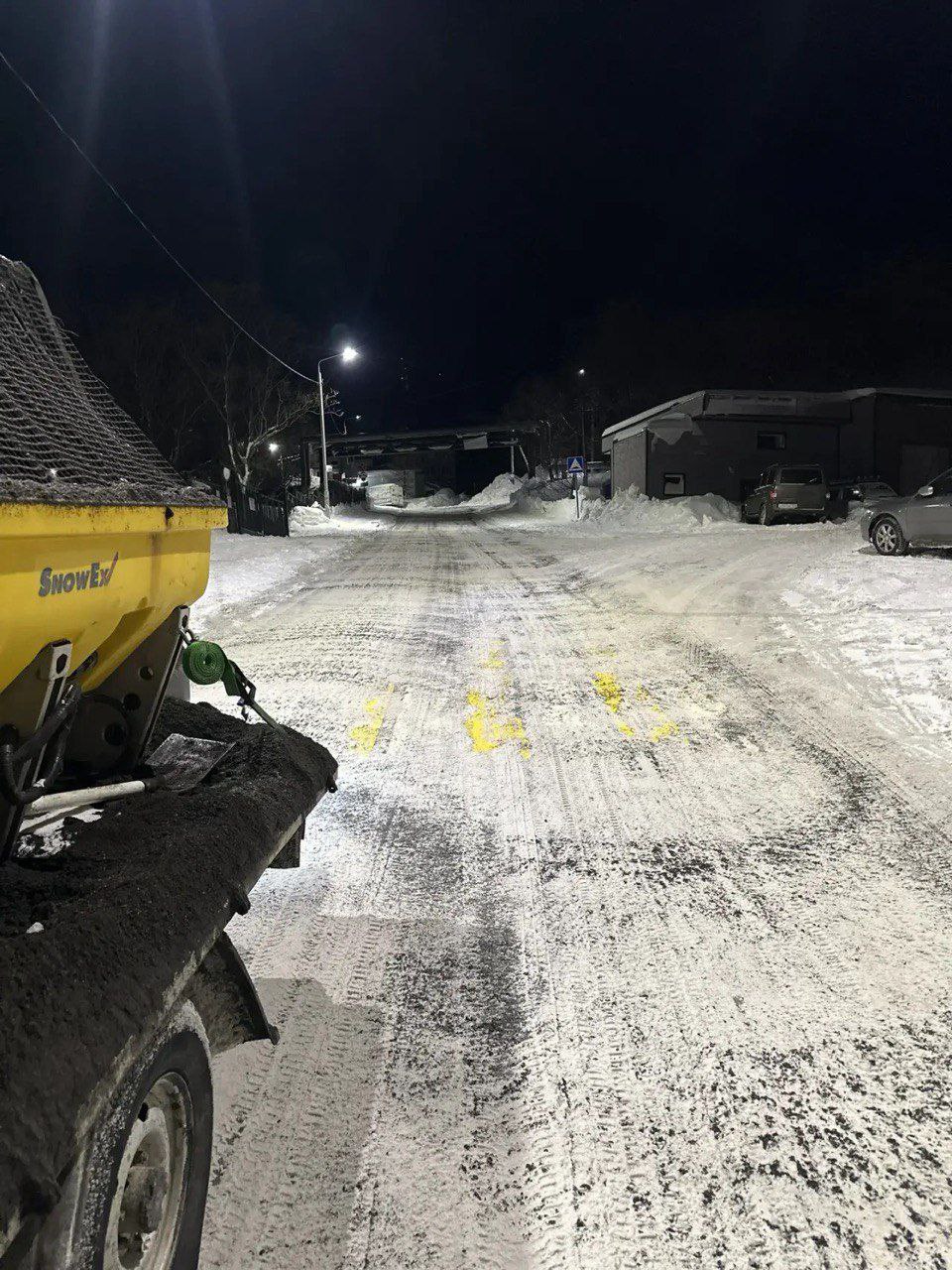 Подрядные организации расчищают и обрабатывают противогололедными материалами внутриквартальные проезды.