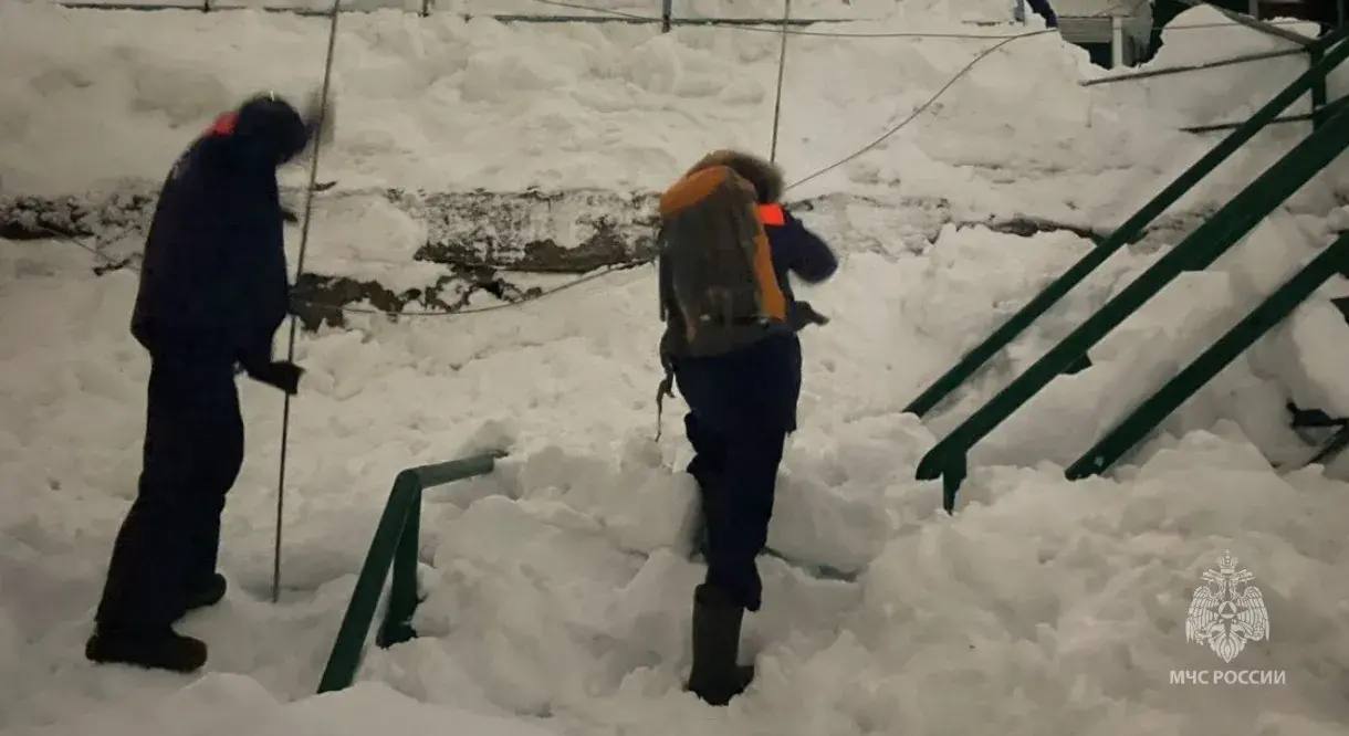 Камчатские спасатели МЧС России обследовали снежную массу, которая сошла с крыши дома в краевом центре