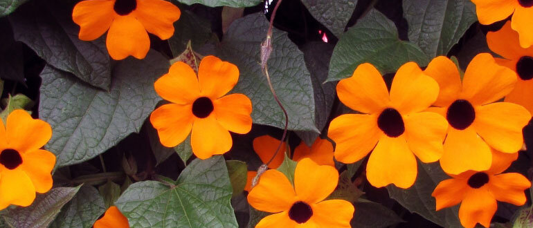 - Эстетика: Тунбергия радует глаз своими яркими цветами с начала лета до сентября, украшая любой садовый элемент.
