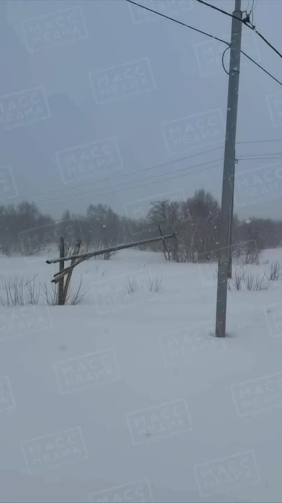 Как сообщают очевидцы, сегодня утром рухнули столбы в районе 89-90 км дороги, которая ведет из посёлка Начики к центральной трассе. Провода пересекают проезд.