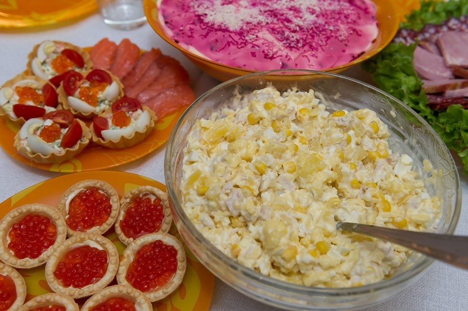 Как сообщает Елена Желянина, известный нутрициолог, традиционные новогодние закуски зачастую содержат несколько источников холестерина. Это касается как яичных желтков, так и жирных мясных изделий или колбас, не говоря уже о самом майонезе. Одной ложки этого соуса достаточно, чтобы получить до 12 граммов жира – при этом, если майонез попадает в несколько салатов на празднике, суточная норма может быть превышена в 2-3 раза.