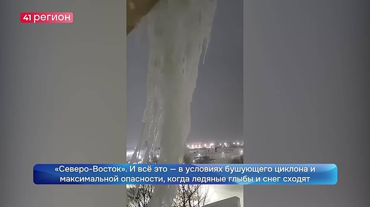 И всё это — в условиях бушующего циклона и максимальной опасности, когда ледяные глыбы и снег сходят с крыш.