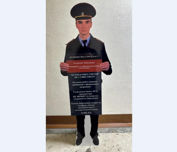 В новогодние праздники два друга из Елизово решили развлечься оригинальным способом. Один ночью забрал из зала торгового центра декоративную фигуру полицейского высотой почти два метра с надписью «Осторожно, мошенники», передает 2Камчатка Сегодня».