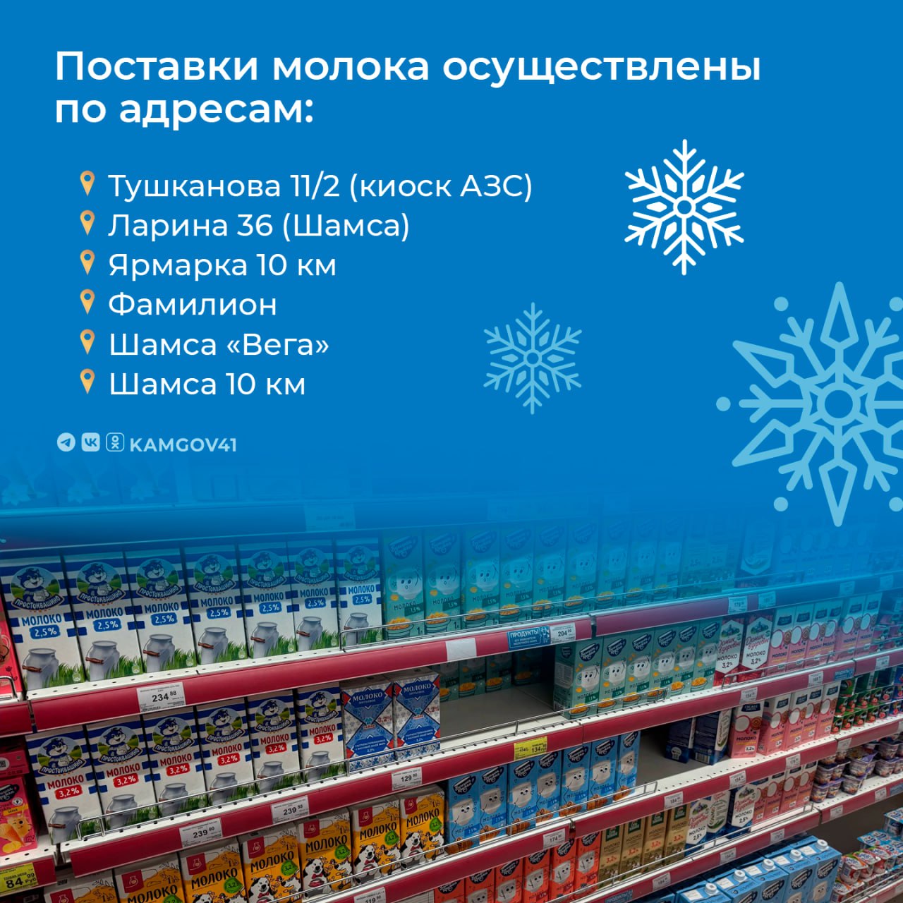 Поставки продуктов первой необходимости — хлеба и молока — осуществлены в доступные торговые точки Петропавловска-Камчатского и Елизовского округа.