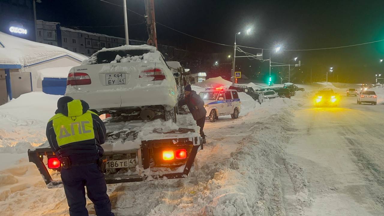 В Петропавловске-Камчатском в ночную смену были эвакуированы машины, брошенные вдоль проезжей части и мешающие работе снегоуборочной техники.