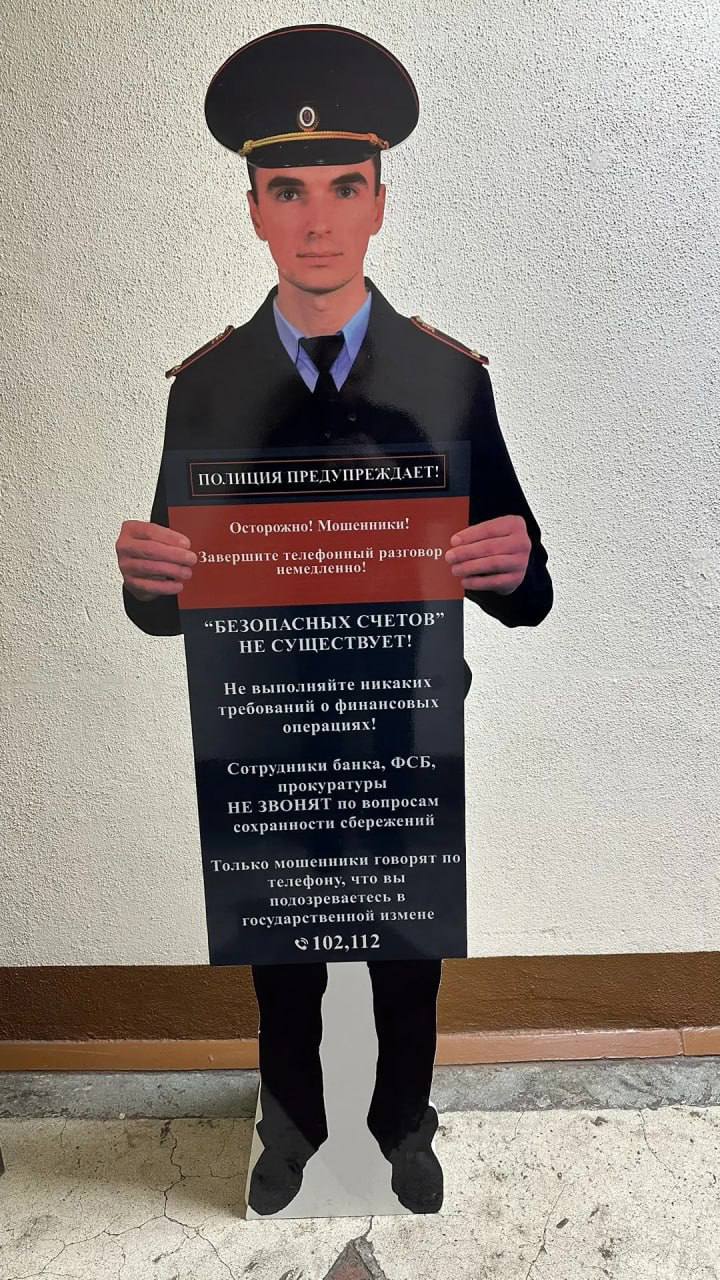 Елизовские полицейские нашли украденный макет «коллеги». Фанерную фигуру полицейского с предупреждением о мошенниках стащили во время новогодних каникул из холла торгового центра в городе Елизово.