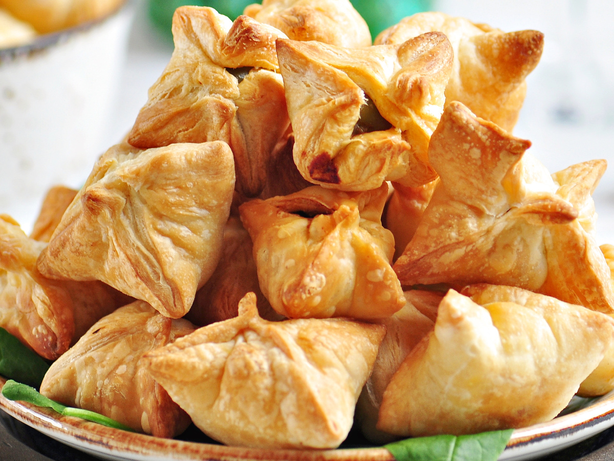 Выложите сформированные закуски на противень, предварительно застеленный пергаментом. Выпекайте в разогретой до 180 градусов духовке с конвекцией около 15 минут. Следите за процессом: тесто должно стать золотистым, но не пересушиться.