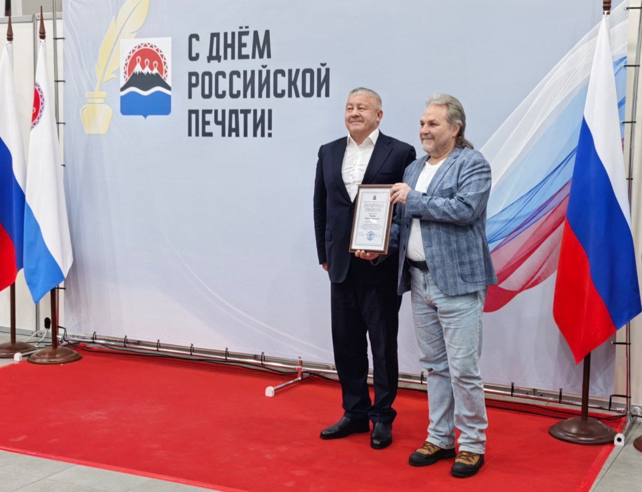 Знак отличия «Почётный журналист Камчатского края» вручили ветерану журналистики Матвею Каргину и заместителю главного редактора информагентства «Камчатка» Кириллу Маренину.