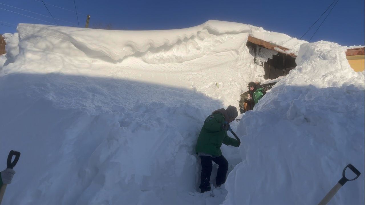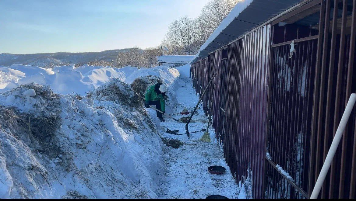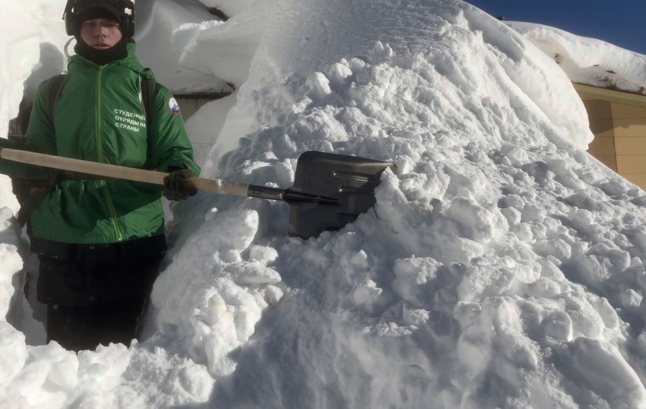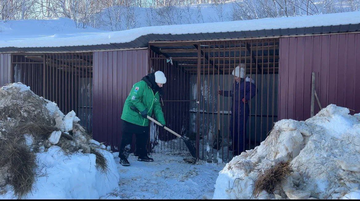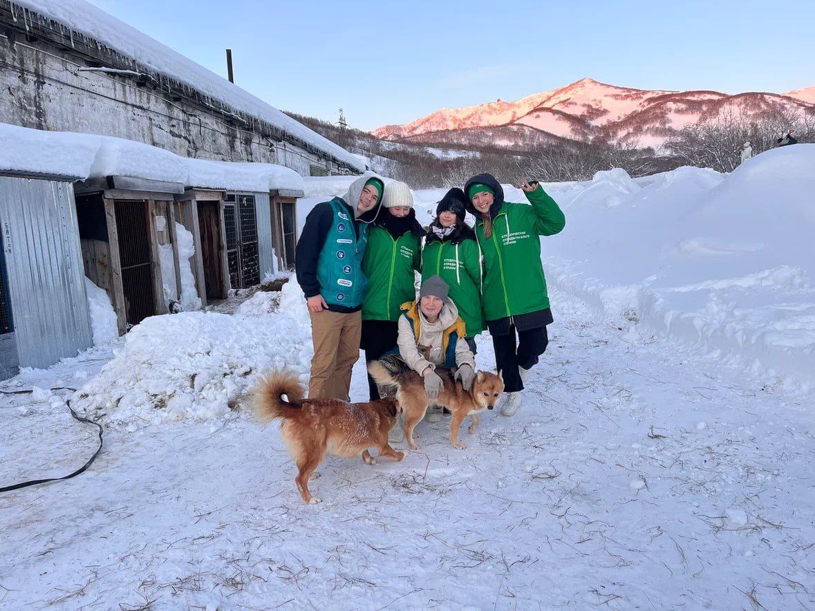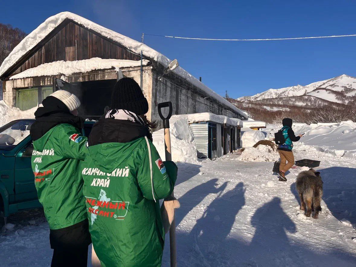 Камчатская молодежь из Российских студенческих отрядов помогает справляться со снежной стихией не только местным жителям, но и братьям нашим меньшим.