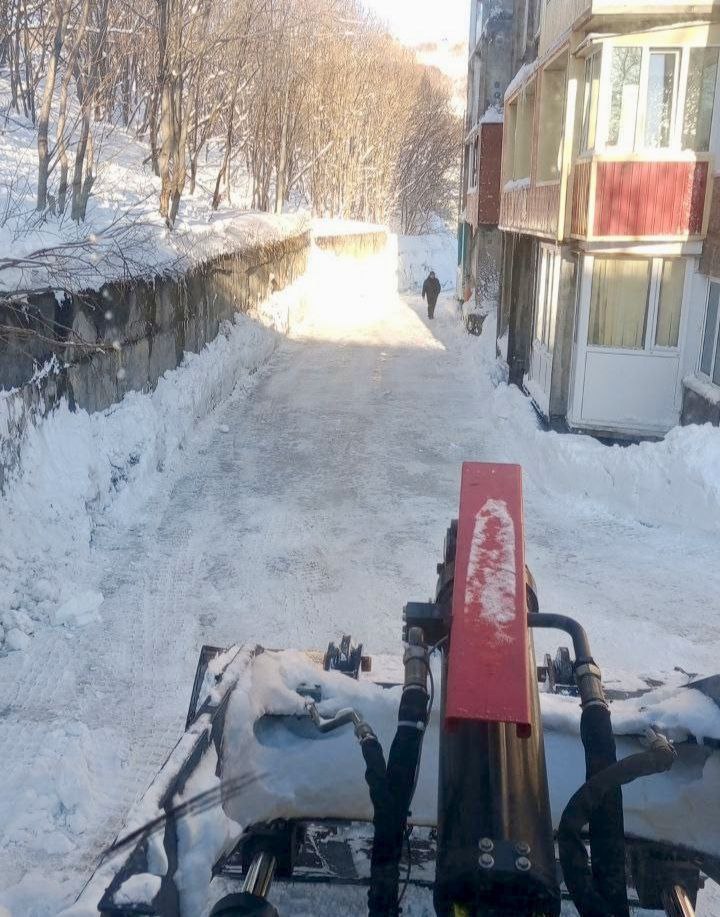 В Петропавловске подрядные организации в ночную смену и рано утром расчищали и обрабатывали противогололедными материалами внутриквартальные проезды, вывозили снег