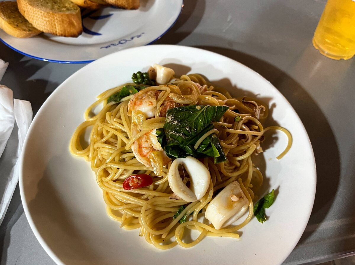Не обошлось и без контраста: накануне была опробована традиционная тайская уха том ям, но вечерний опыт с пастой оказал решающее влияние на восприятие. Как такое может быть? Тайцы, оказывается, способны создать блюдо, которое меняет все представления о пасте, и от этого становится только интереснее. Гастрономические открытия могут быть повсюду — даже в самом неожиданном месте.